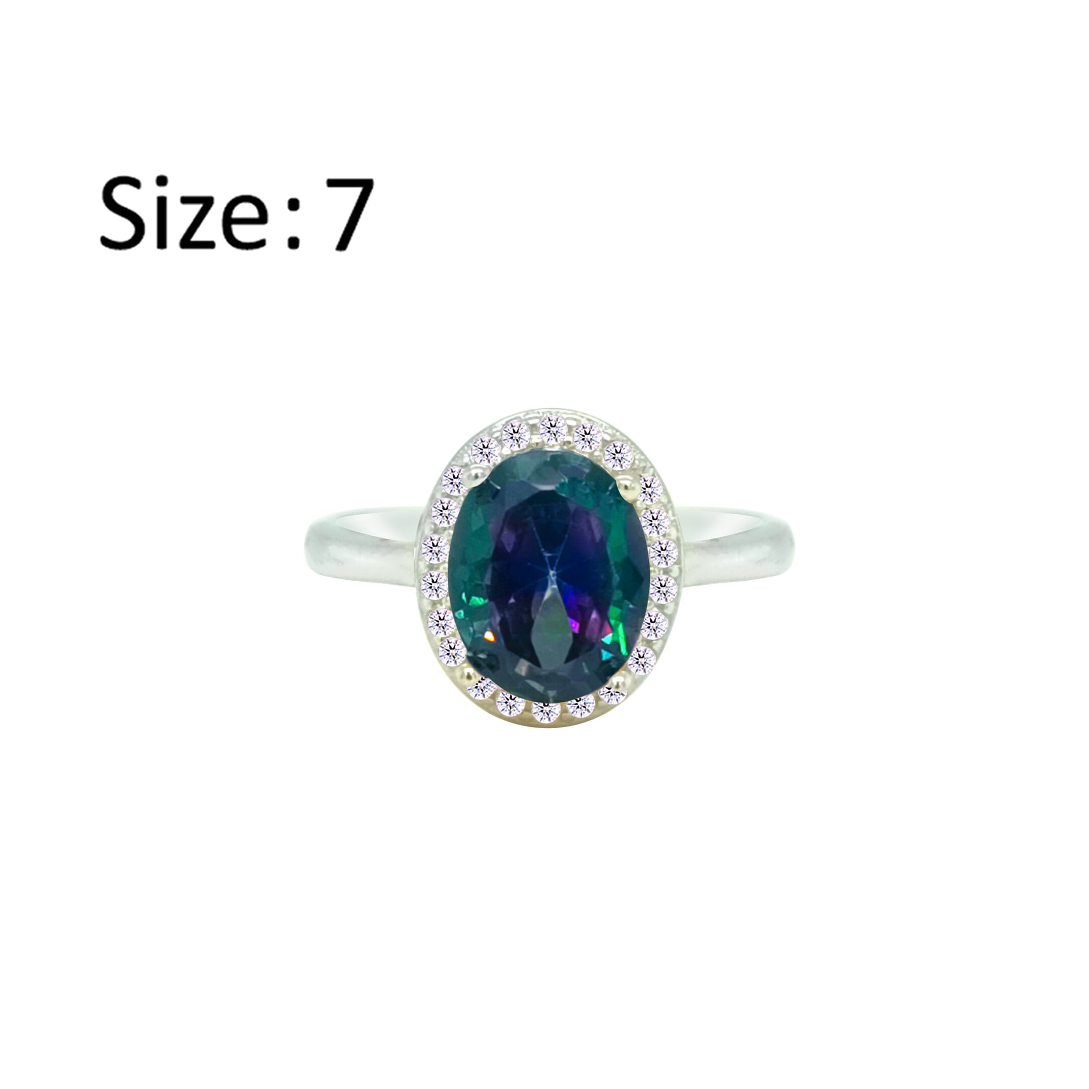 عصفور كريستال خاتم فضة عيار 925 بتصميم بيضاوي متعدد الالوان مرصع بالزركون - RD0211-AP-7