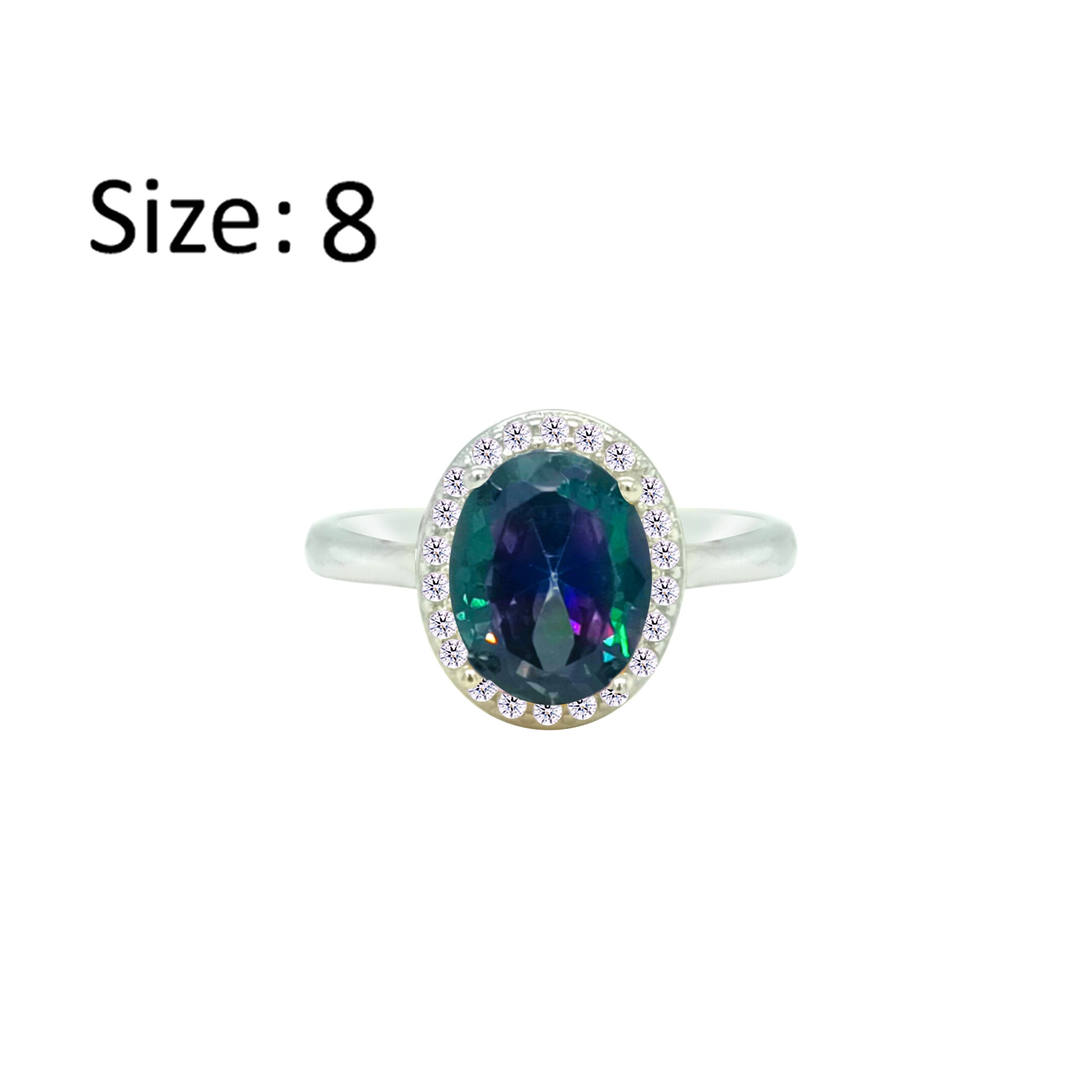 عصفور كريستال خاتم فضة عيار 925 بتصميم بيضاوي متعدد الالوان مرصع بالزركون - RD0211-AP-8
