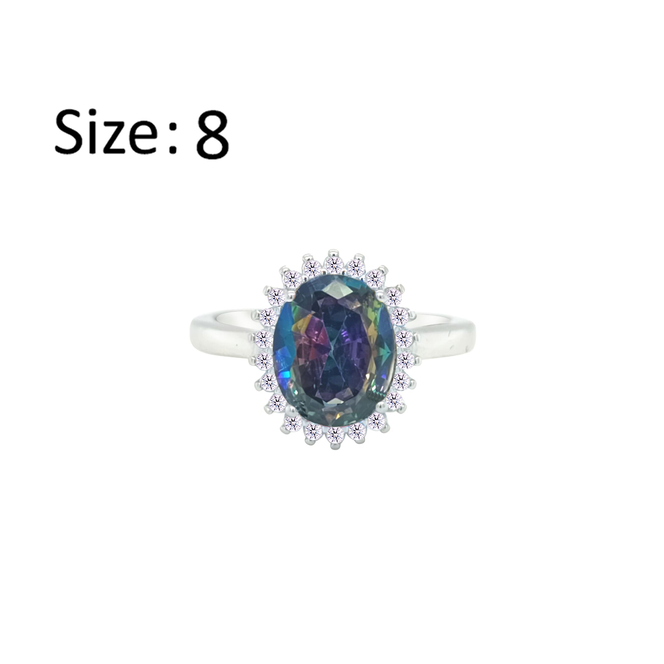 عصفور كريستال خاتم فضة عيار 925 بتصميم بيضاوي متعدد الالوان مرصع بالزركون - RD0212-AP-8