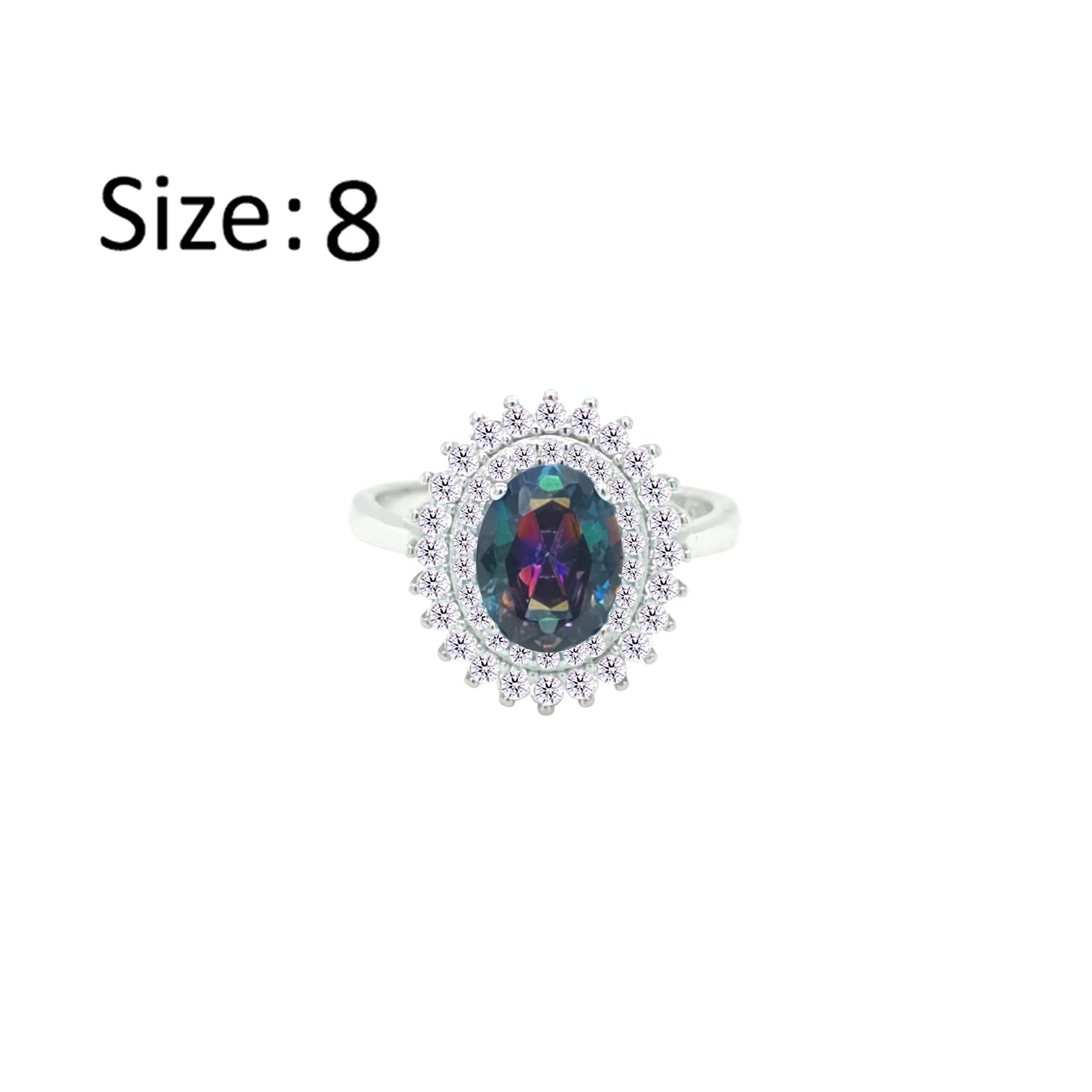 عصفور كريستال خاتم فضة عيار 925 بتصميم بيضاوي متعدد الالوان مرصع بالزركون - RD0213-WAP-8