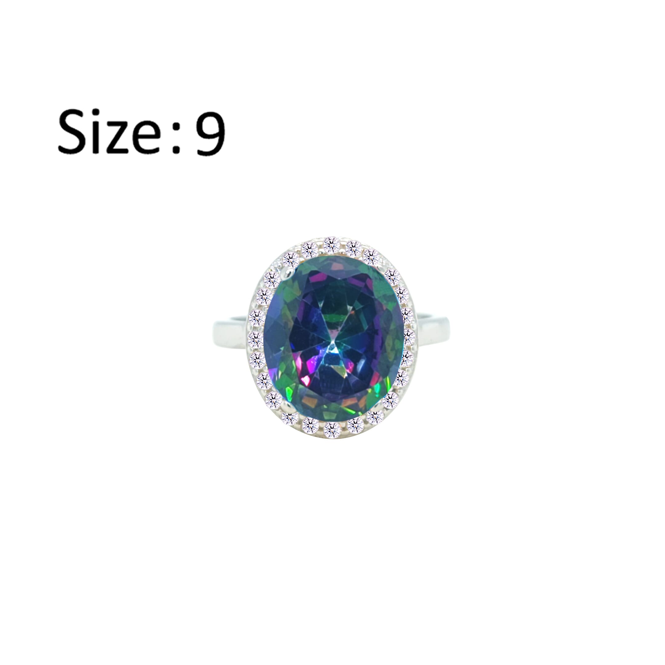 عصفور كريستال خاتم فضة عيار 925 بتصميم بيضاوي متعدد الالوان مرصع بالزركون - RD0214-AP-9