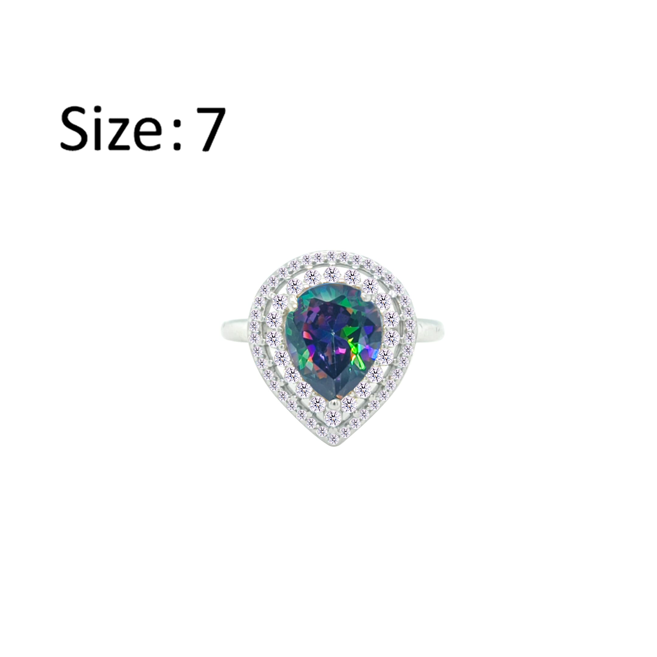 عصفور كريستال خاتم فضة عيار 925 بتصميم كمثري متعدد الالوان مرصع بالزركون - RD0204-WAP-7