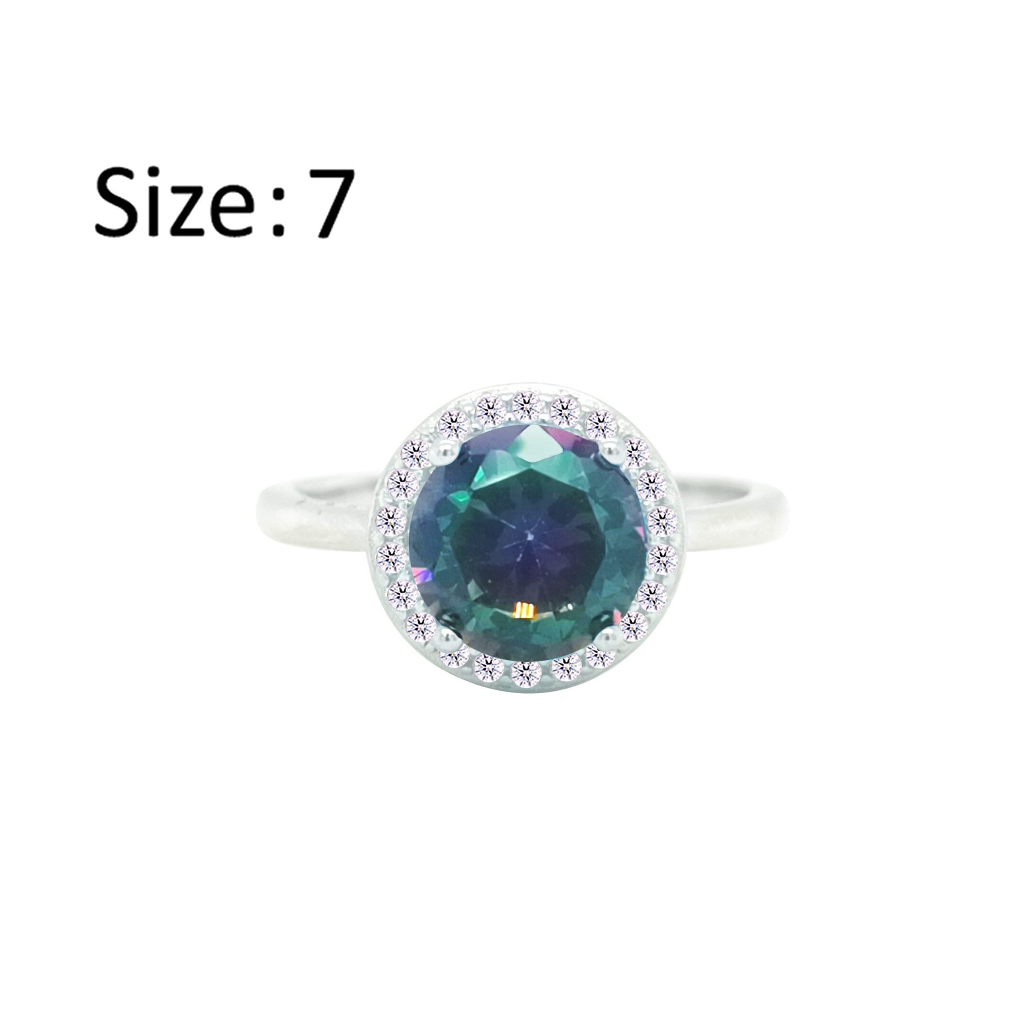 عصفور كريستال خاتم فضة عيار 925 بتصميم دائري متعدد الالوان مرصع بالزركون - RD0205-AP-7