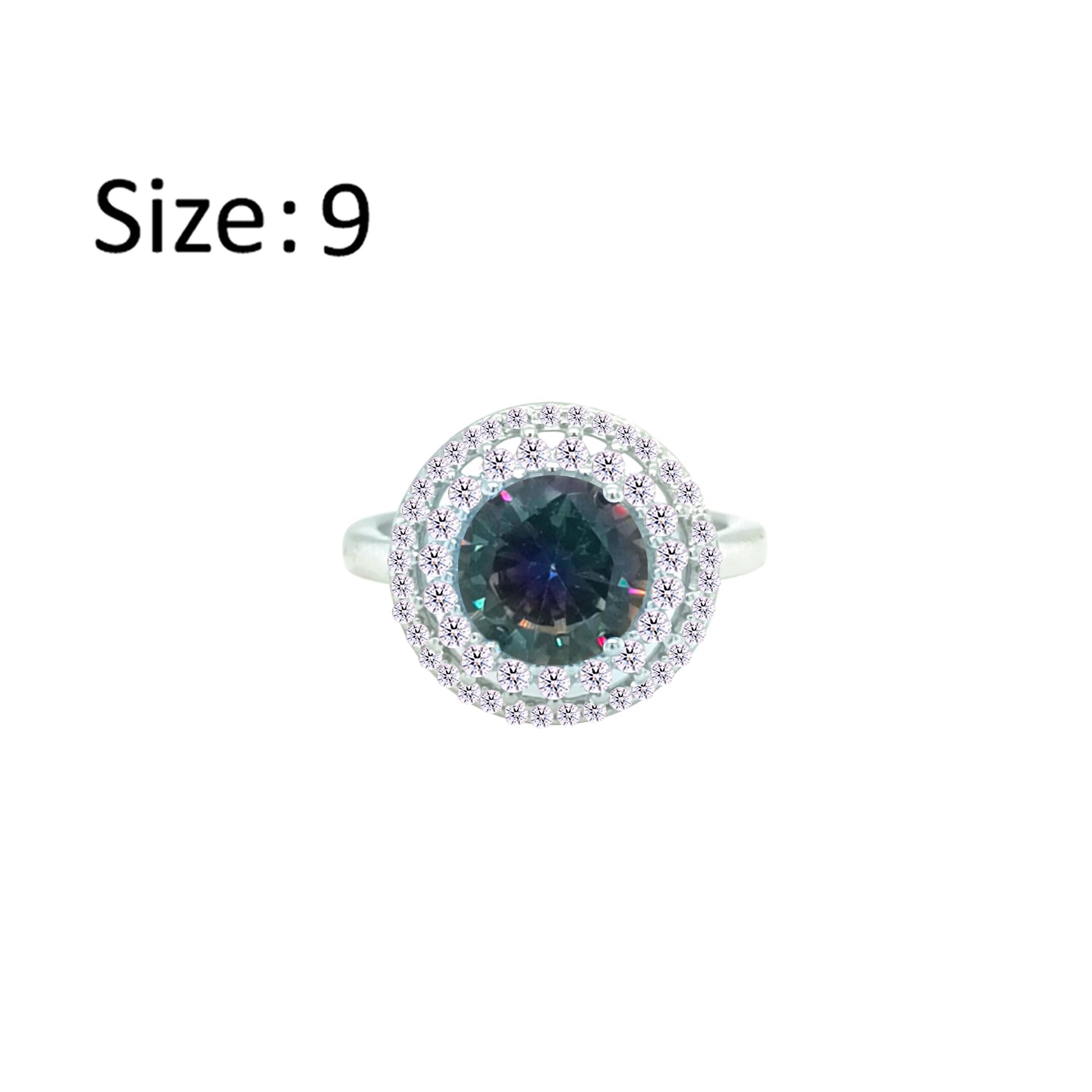 عصفور كريستال خاتم فضة عيار 925 بتصميم دائري متعدد الالوان مرصع بالزركون - RD0206-WAP-9