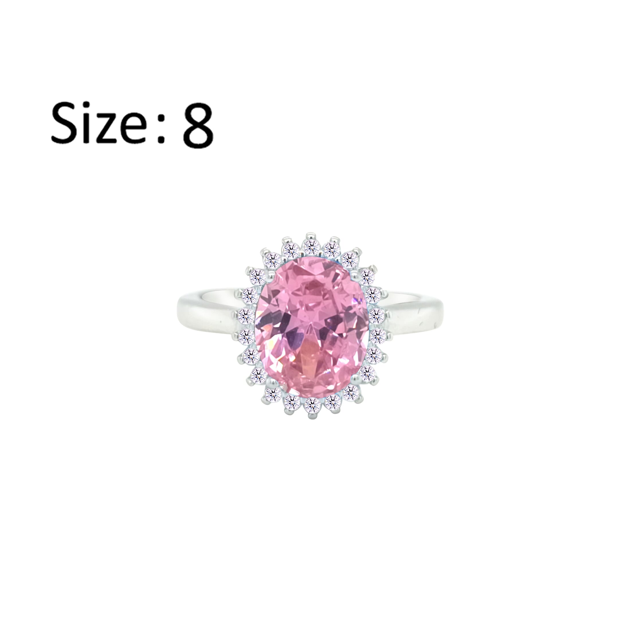 عصفور كريستال خاتم فضة عيار 925 بتصميم بيضاوي وردي مرصع بالزركون - RD0212-O-8