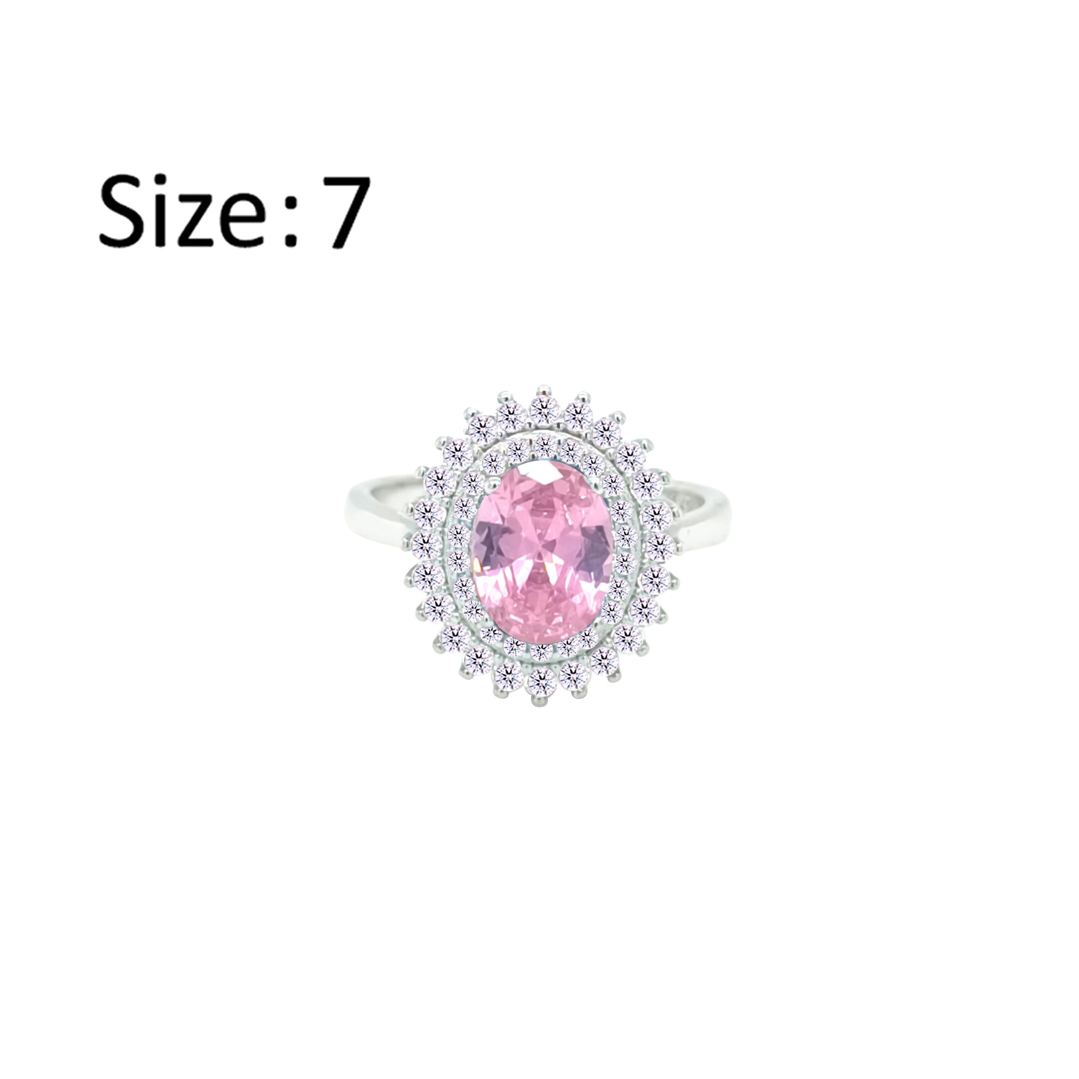 عصفور كريستال خاتم فضة عيار 925 بتصميم بيضاوي وردي مرصع بالزركون - RD0213-WO-7