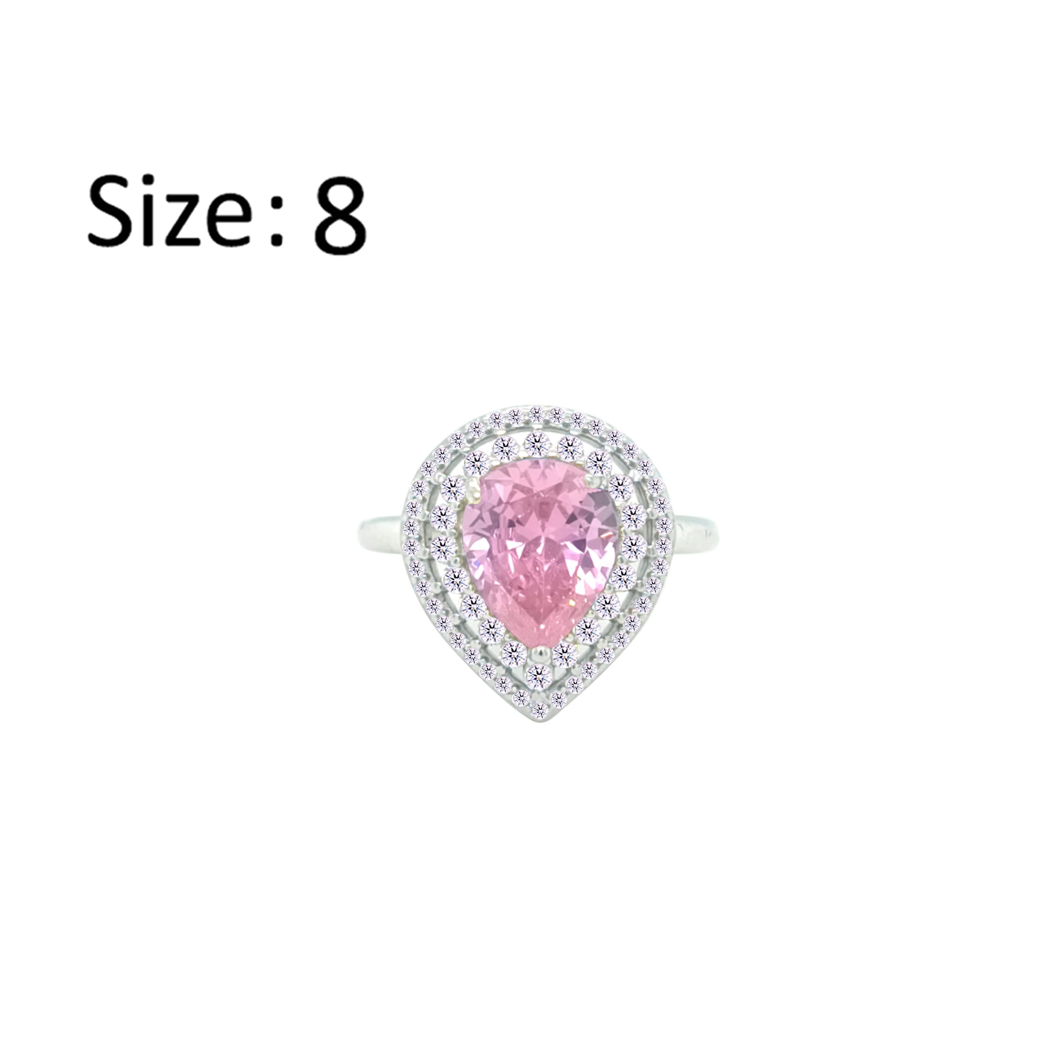 عصفور كريستال خاتم فضة عيار 925 بتصميم كمثري وردي مرصع بالزركون - RD0204-WO-8
