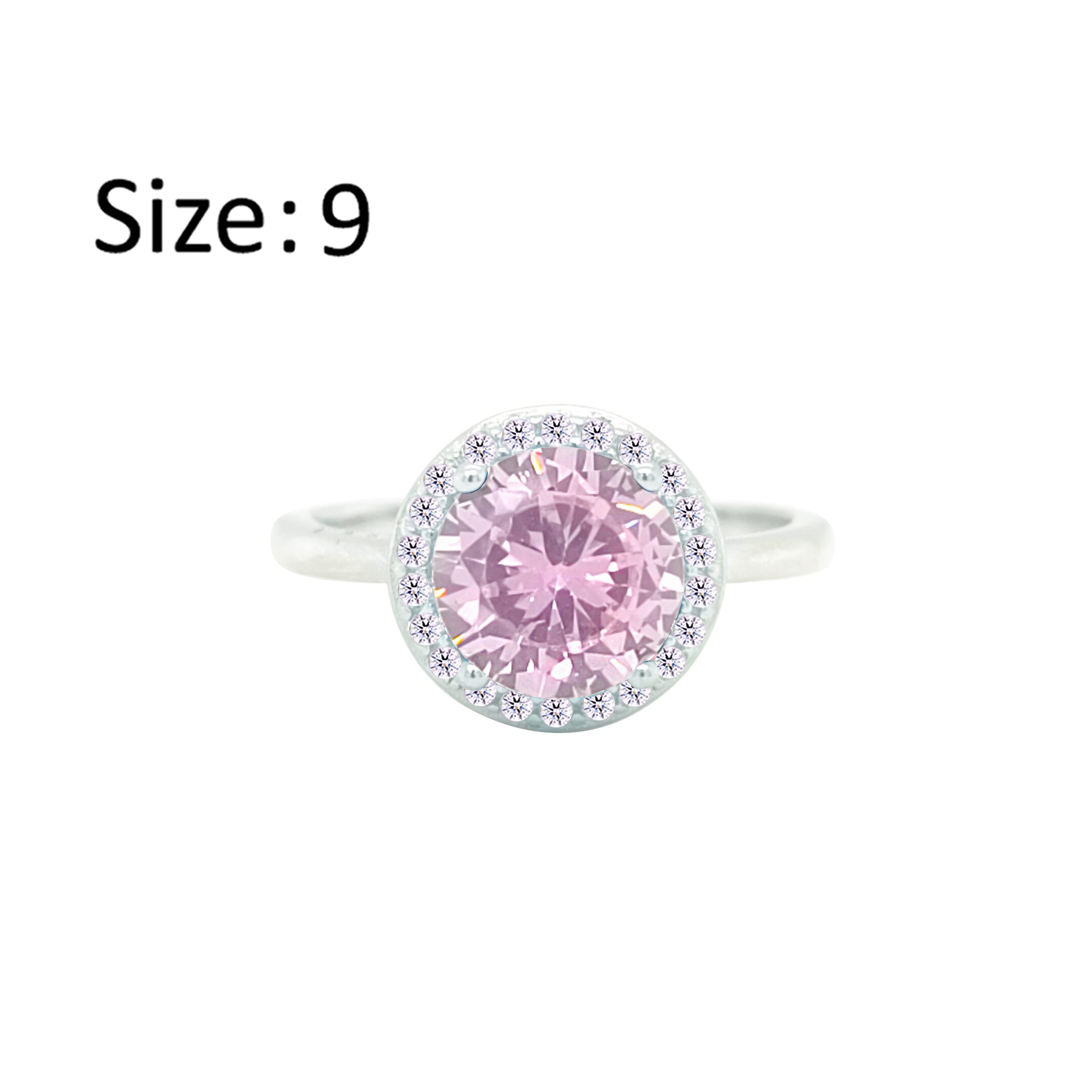 عصفور كريستال خاتم فضة عيار 925 بتصميم دائري وردي مرصع بالزركون - RD0205-O-9