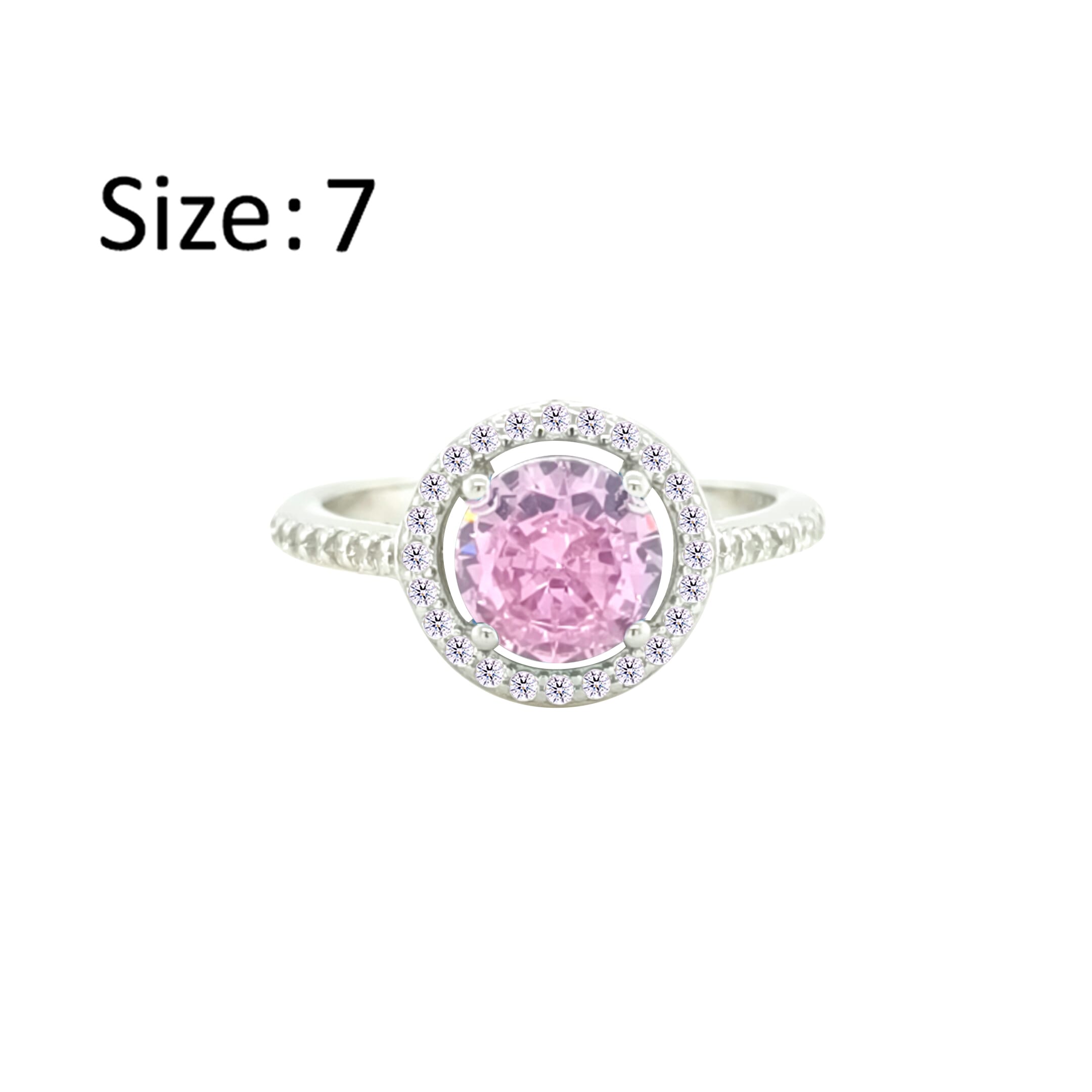 عصفور كريستال خاتم فضة عيار 925 بتصميم دائري وردي مرصع بالزركون - RD0208-O-7