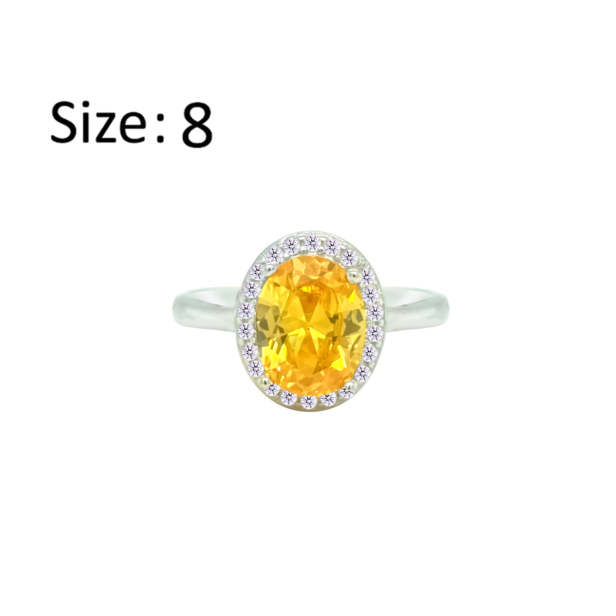 عصفور كريستال خاتم فضة عيار 925 بتصميم بيضاوي اصفر مرصع بالزركون - RD0211-Y-8