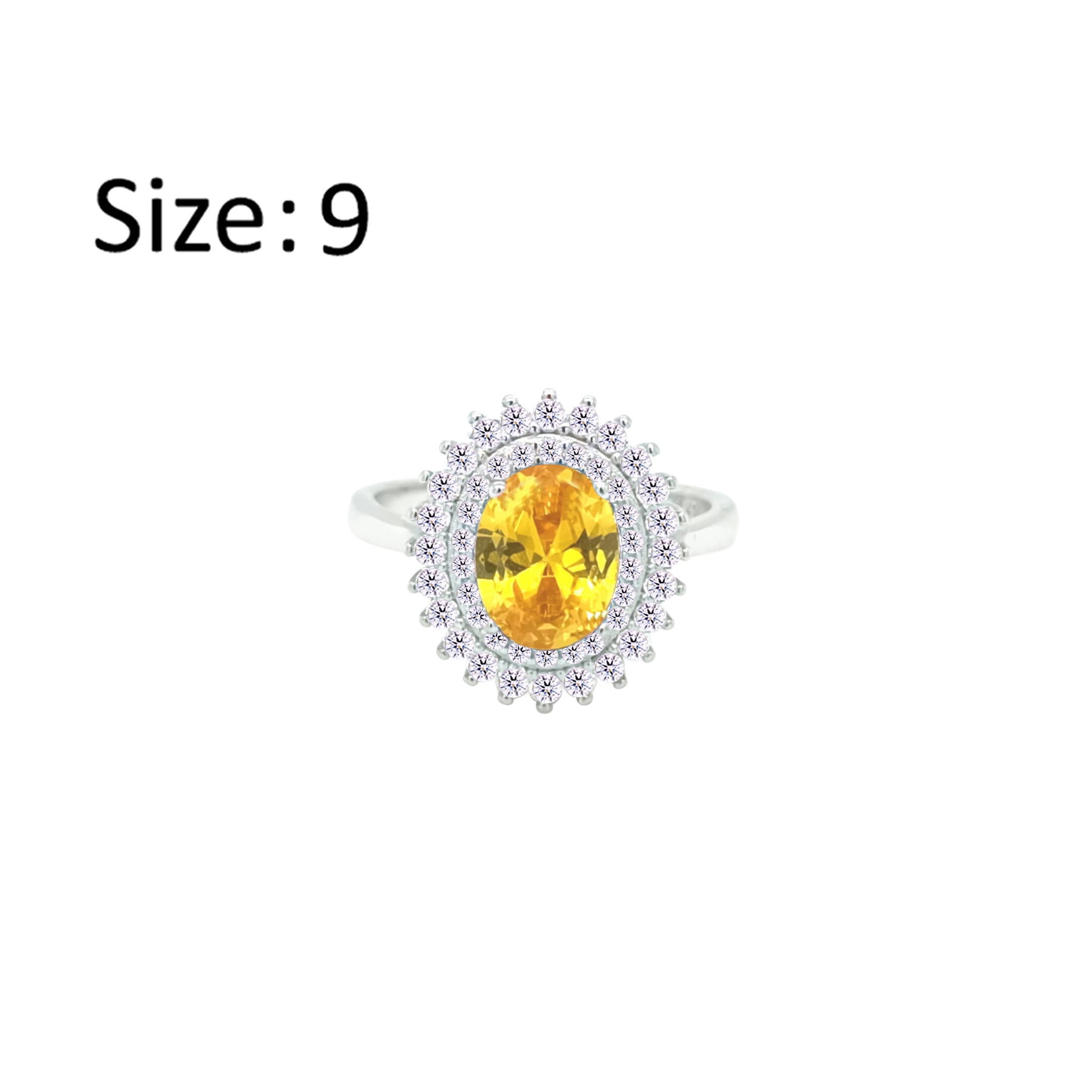 عصفور كريستال خاتم فضة عيار 925 بتصميم بيضاوي اصفر مرصع بالزركون - RD0213-WY-9