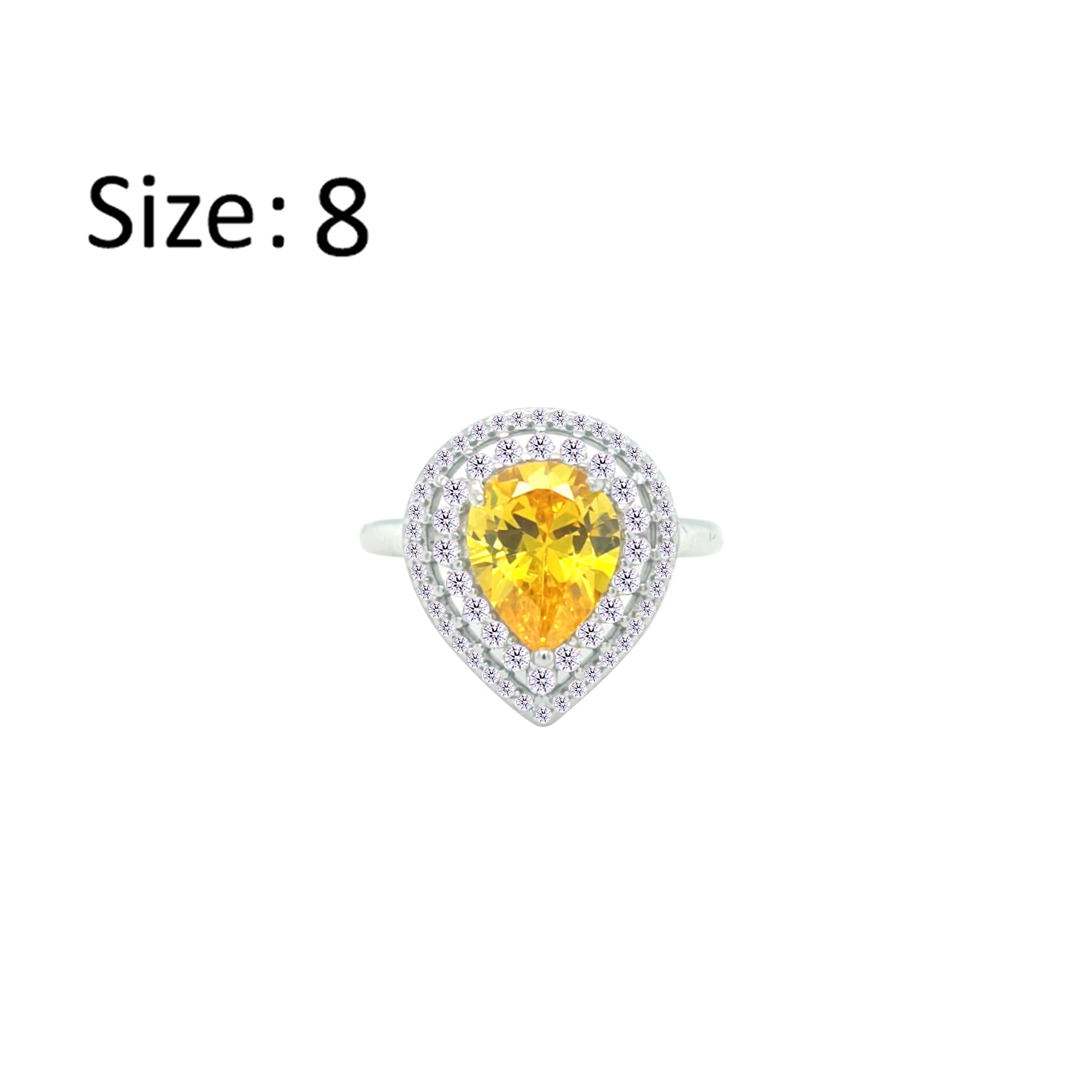 عصفور كريستال خاتم فضة عيار 925 بتصميم كمثري اصفر مرصع بالزركون - RD0204-WY-8