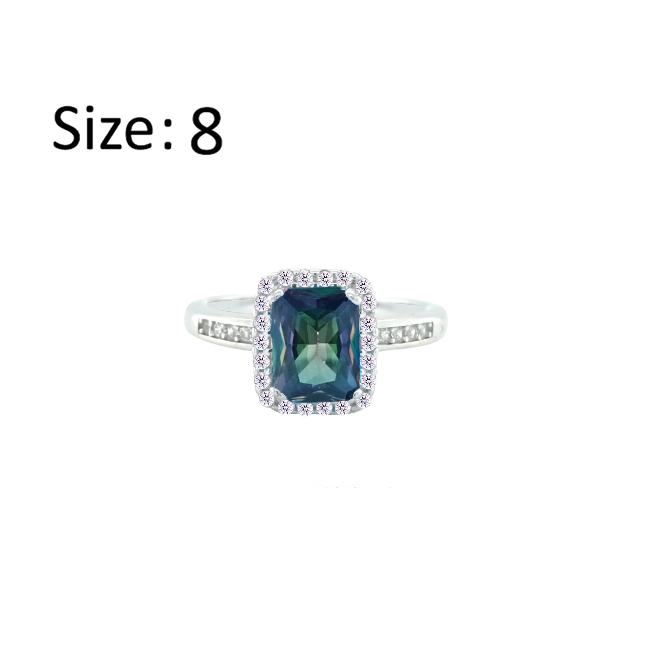 عصفور كريستال خاتم فضة عيار 925 بتصميم اميرالد متعدد الالوان مرصع بالزركون - RD0199-AP-8