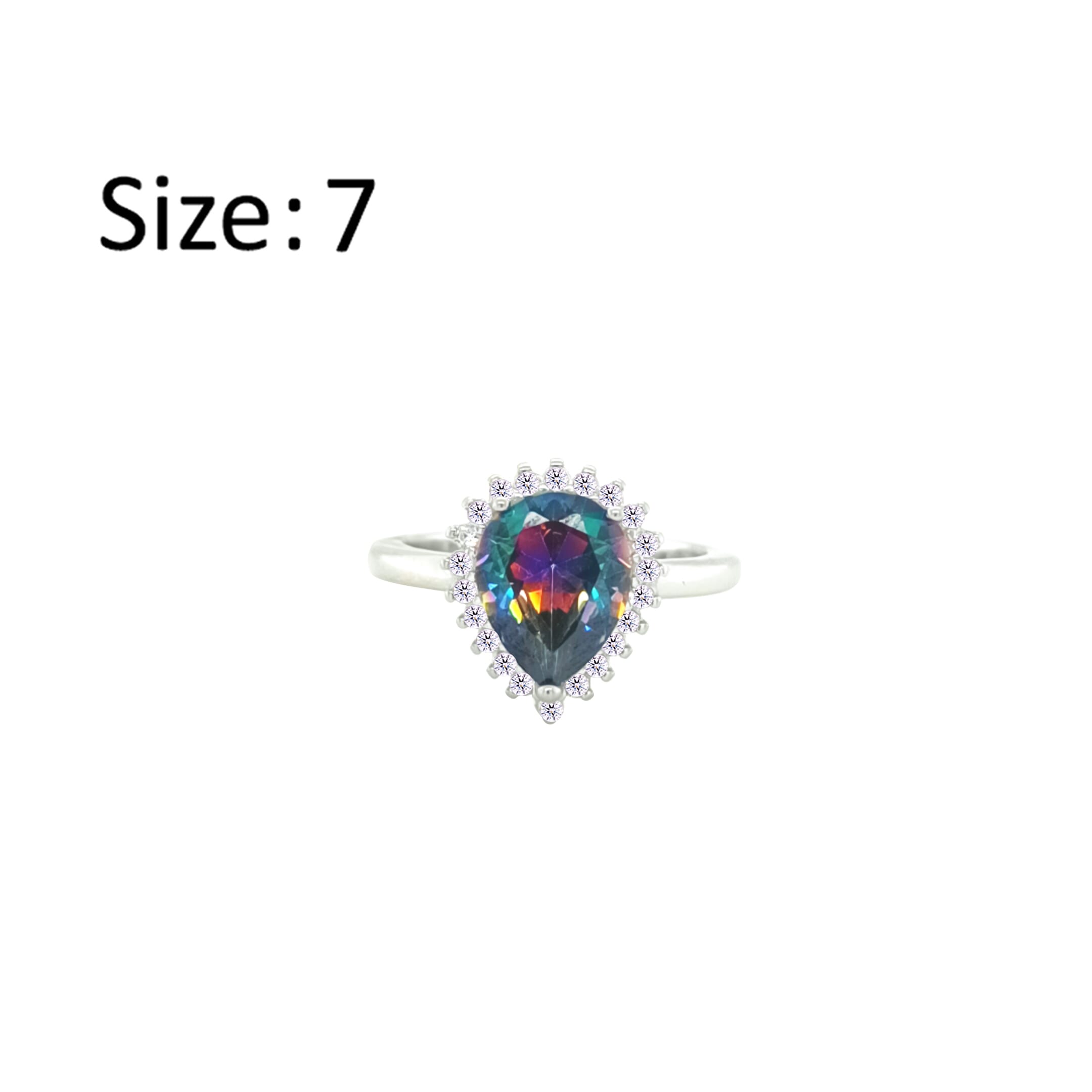 عصفور كريستال خاتم فضة عيار 925 بتصميم كمثري متعدد الالوان مرصع بالزركون - RD0201-AP-7