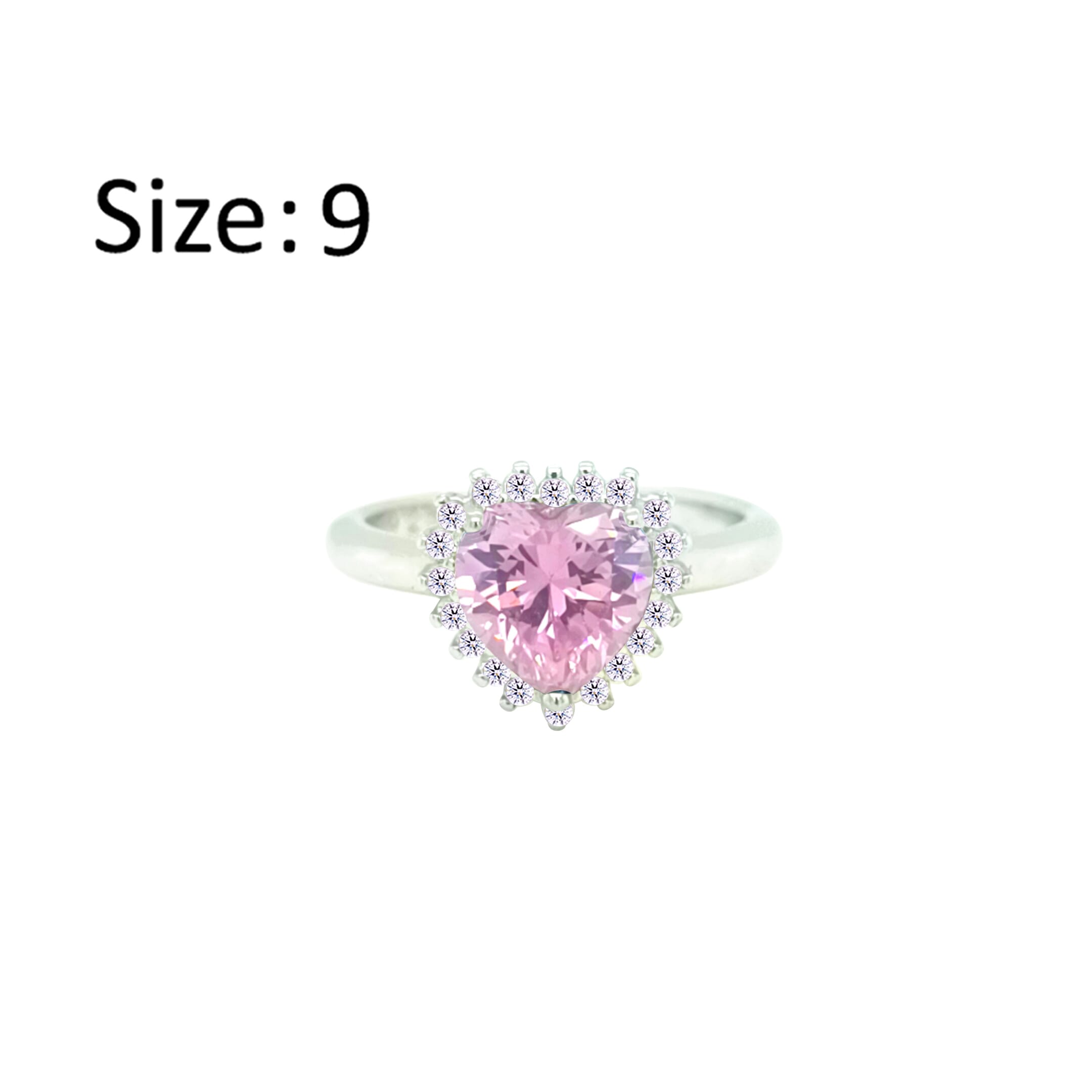 عصفور كريستال خاتم فضة عيار 925 علي شكل قلب وردي مرصع بالزركون - RD0200-O-9