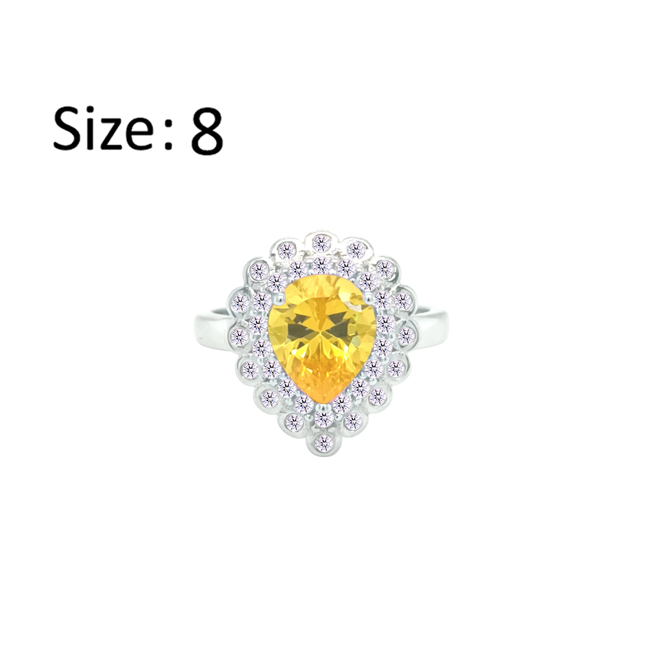 عصفور كريستال خاتم فضة عيار 925 بتصميم كمثري اصفر مرصع بالزركون - RD0203-WY-8