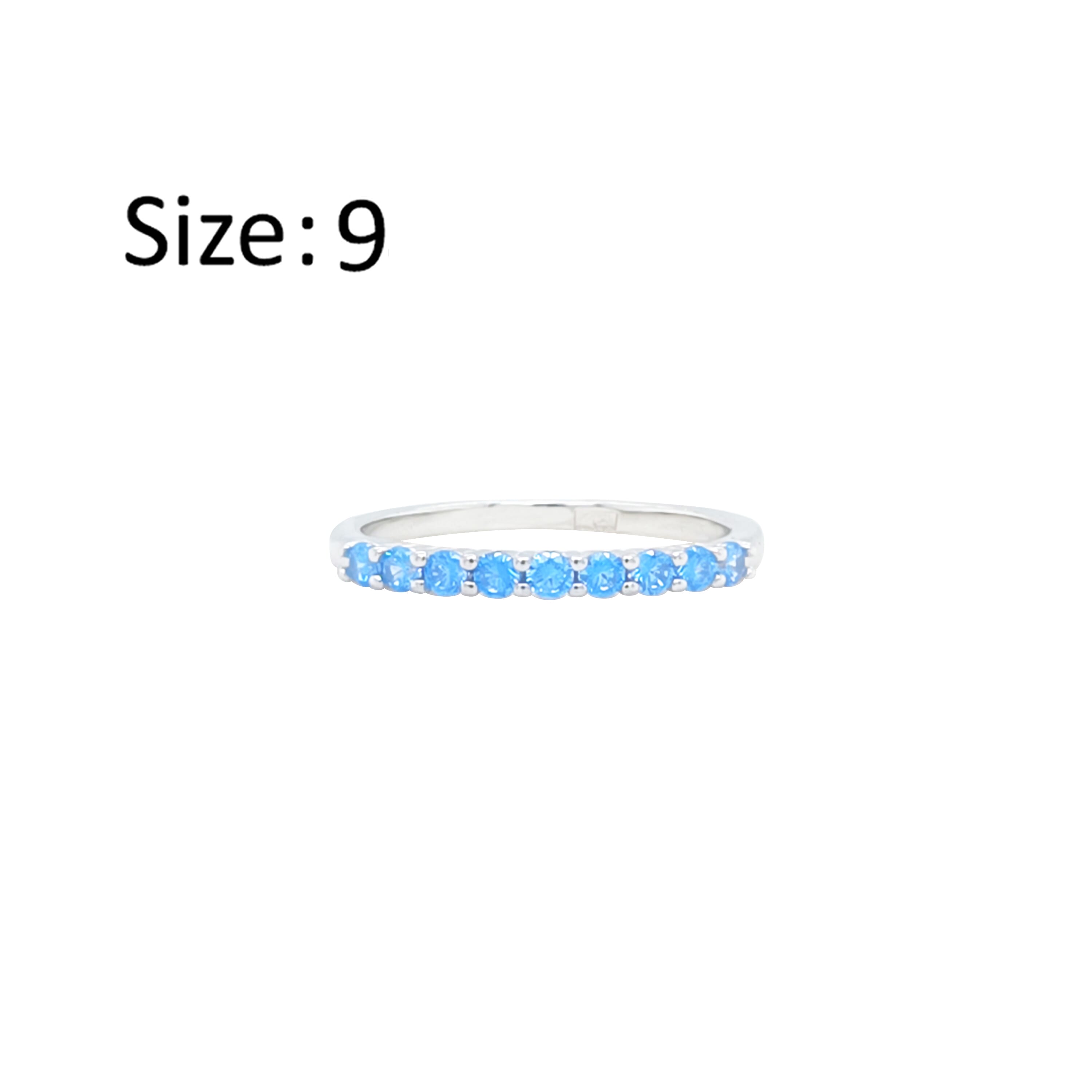 عصفور كريستال خاتم فضة عيار 925 مرصع بفصوص زركون دائرية اكوامارين RM0103-M-9