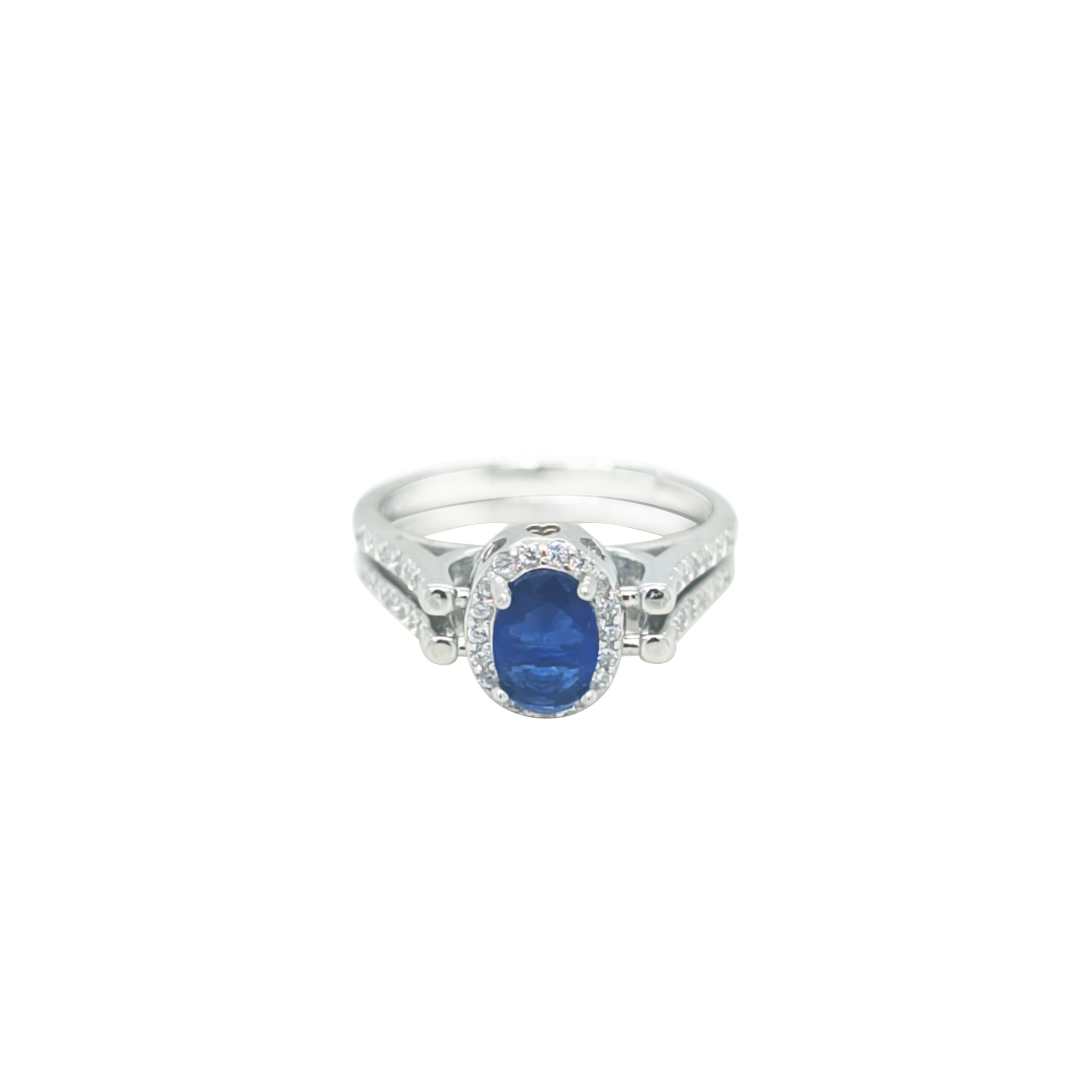 Asfour Crystal Fashion Double Ring With Blue & Clear Oval Design In 925 Sterling Silver-RD0187-WB-7