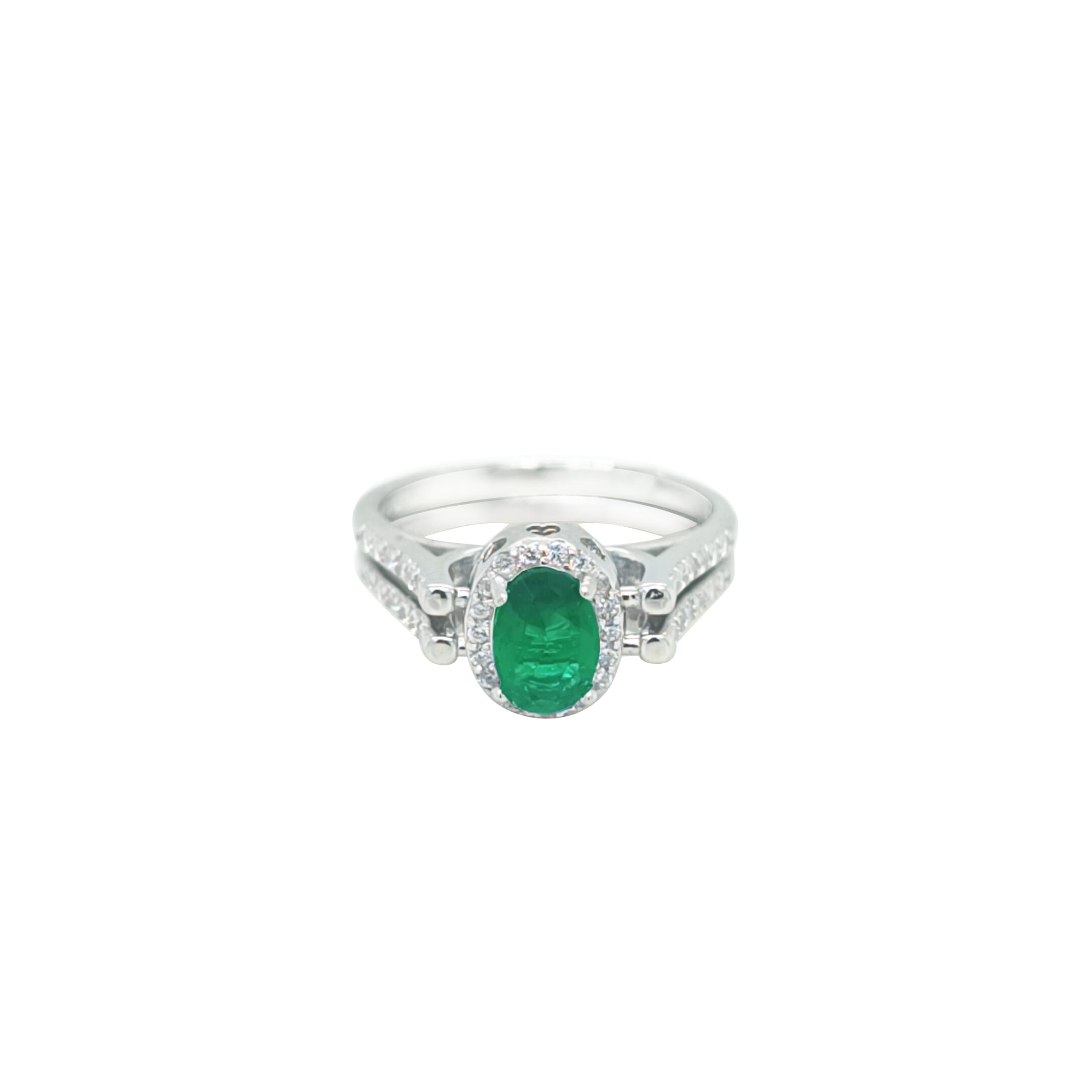Asfour Crystal Fashion Double Ring With Emerald & Clear Oval Design In 925 Sterling Silver-RD0187-WG-7