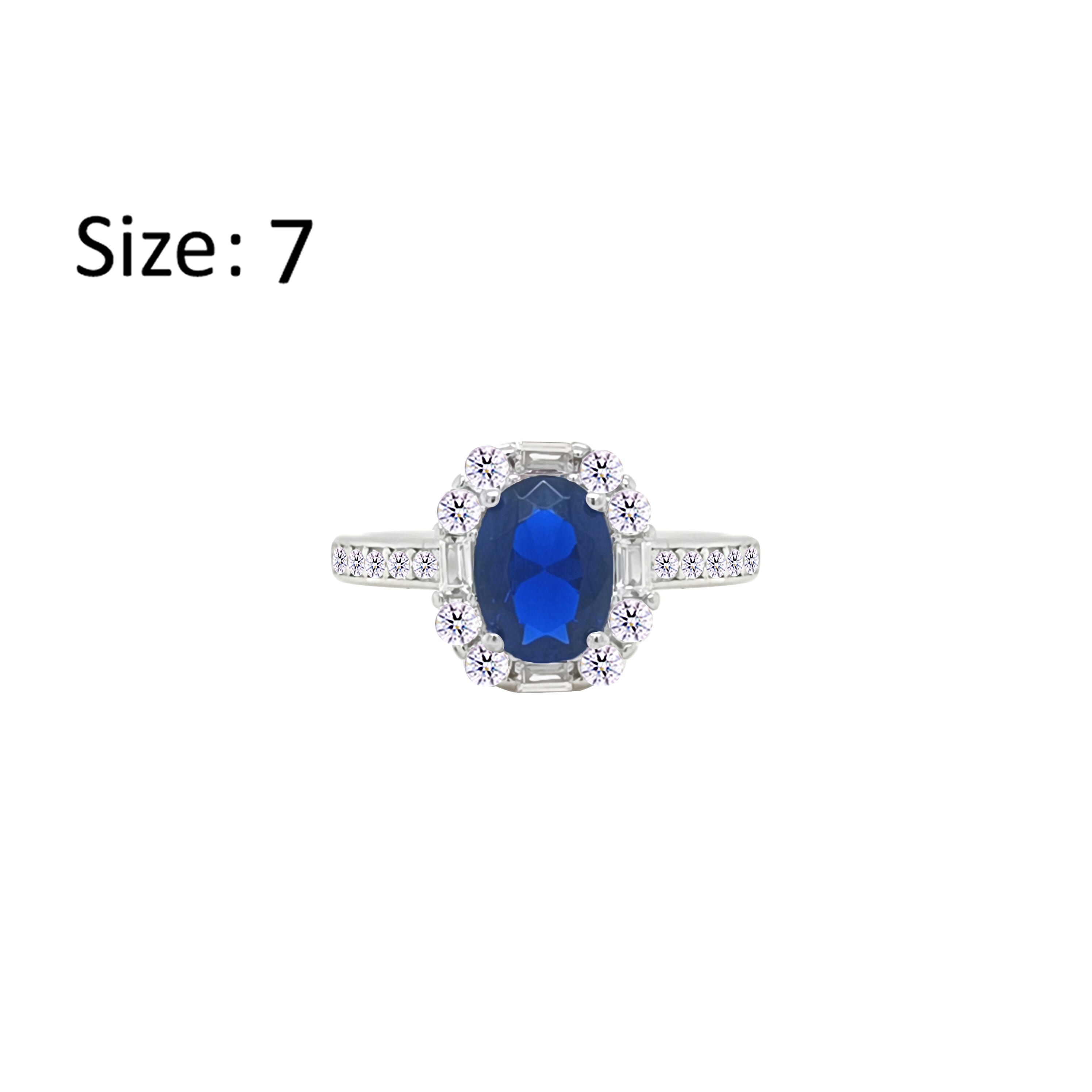 Asfour Crystal Fashion Ring With Blue Oval Design In 925 Sterling Silver-RM0156-B-7