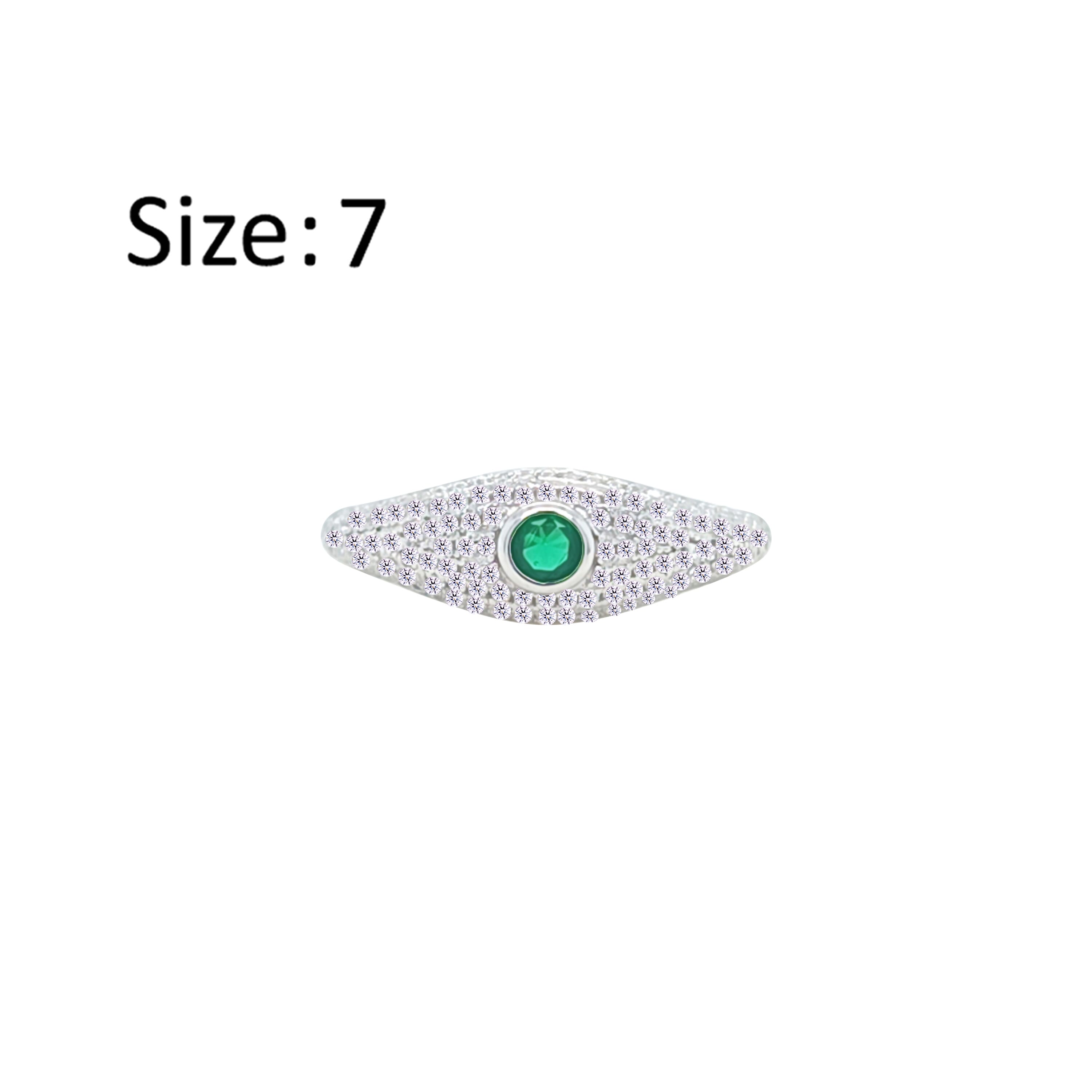 عصفور كريستال خاتم فضة عيار 925 بتصميم عين خضراء مرصعة بالزركون RM0136-WG-7