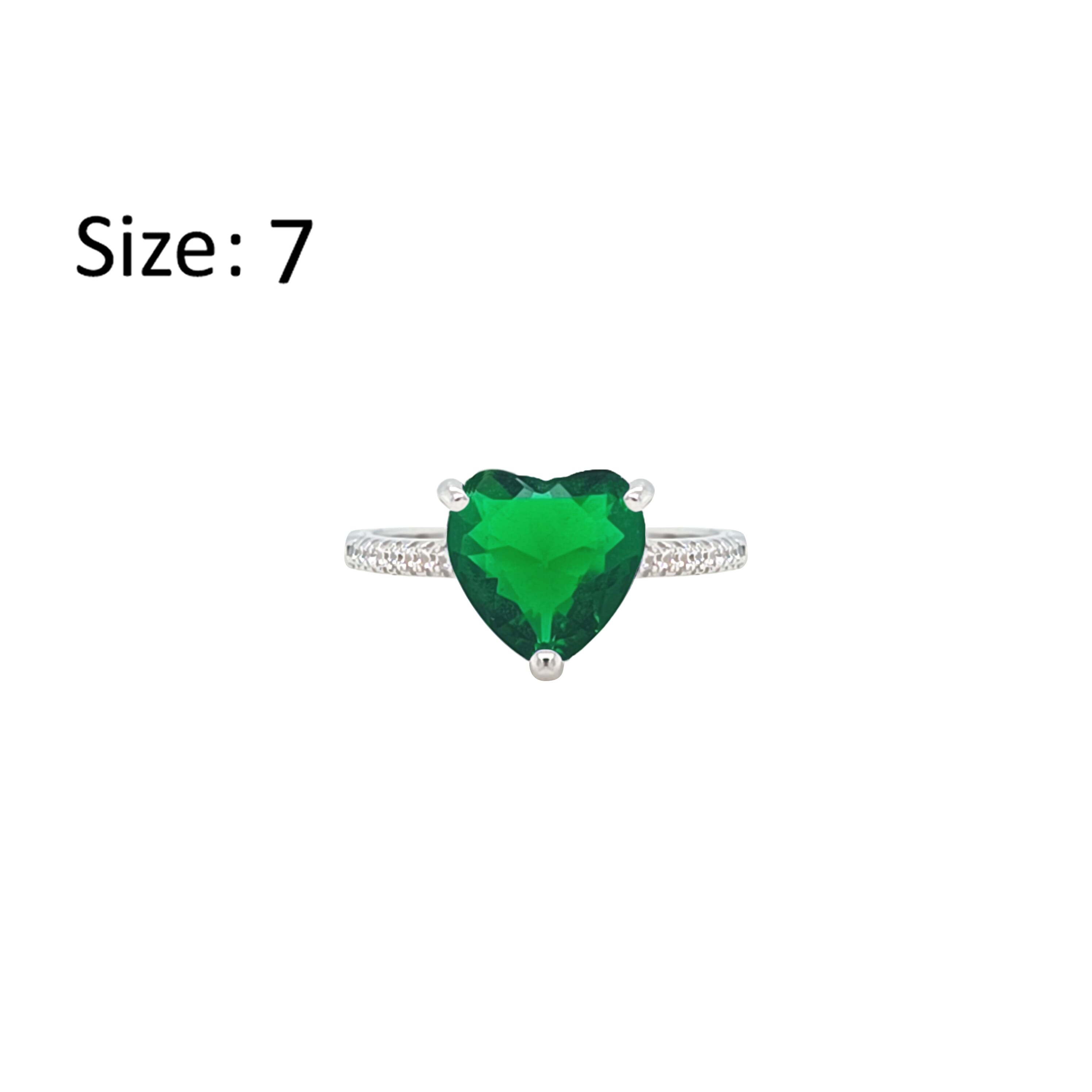 Asfour Crystal Fashion Ring With Emerald Green Heart Design In 925 Sterling Silver-RM0149-G-7
