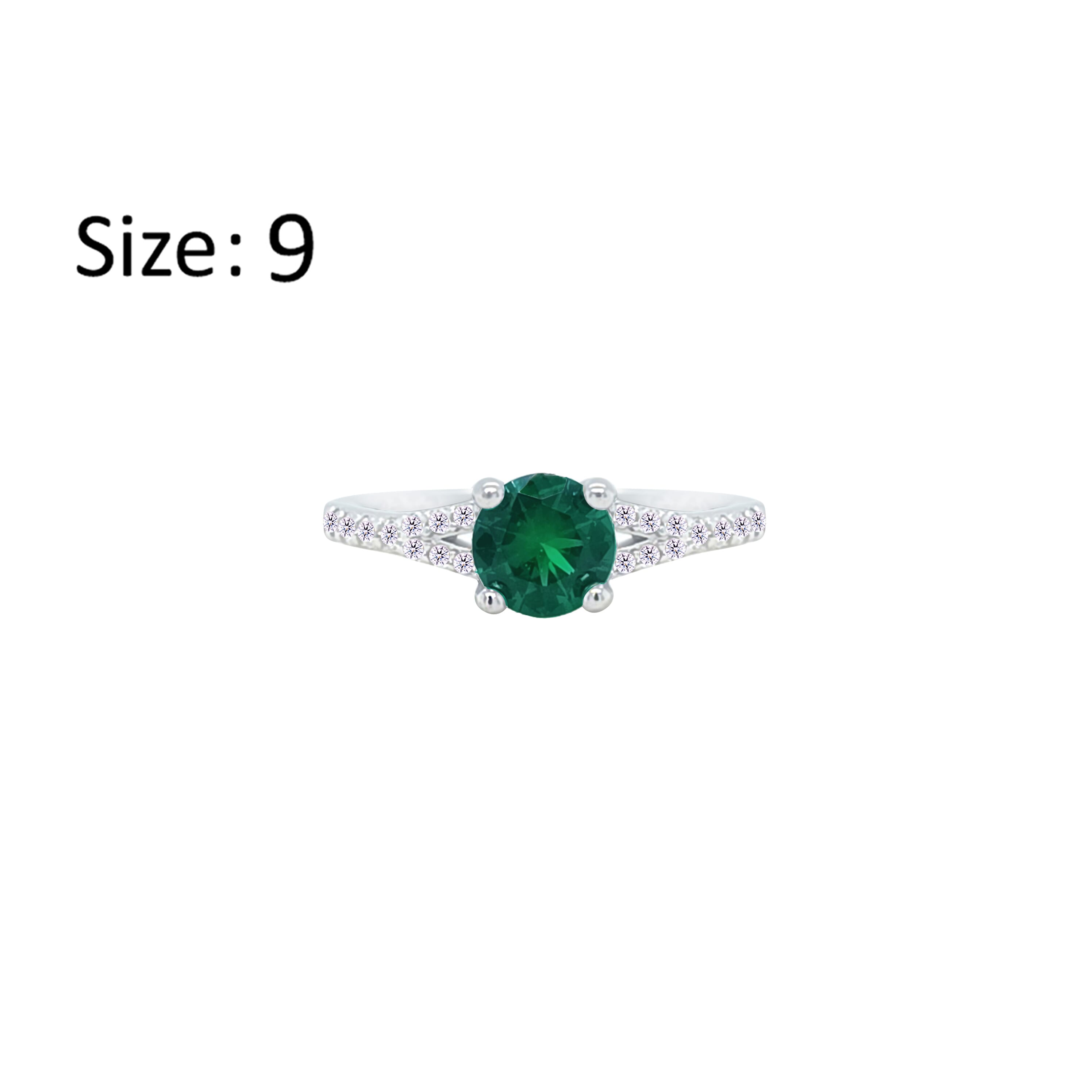 Asfour Crystal Fashion Ring With Emerald Green Round Design In 925 Sterling Silver-RM0143-G-9