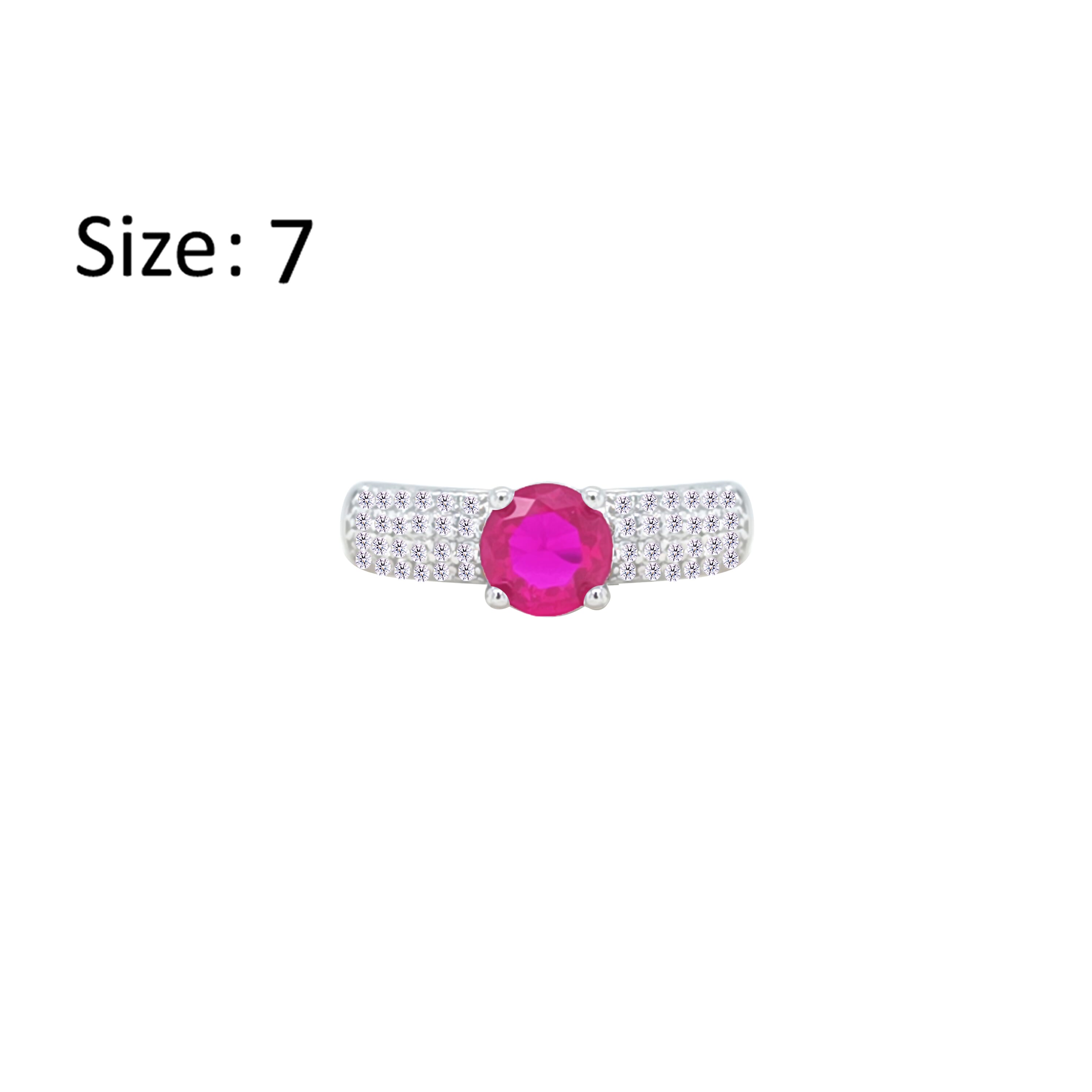 Asfour Crystal Fashion Ring With Fuchsia Round Design Inlaid With Zircon In 925 Sterling Silver-RM0138-WF-7