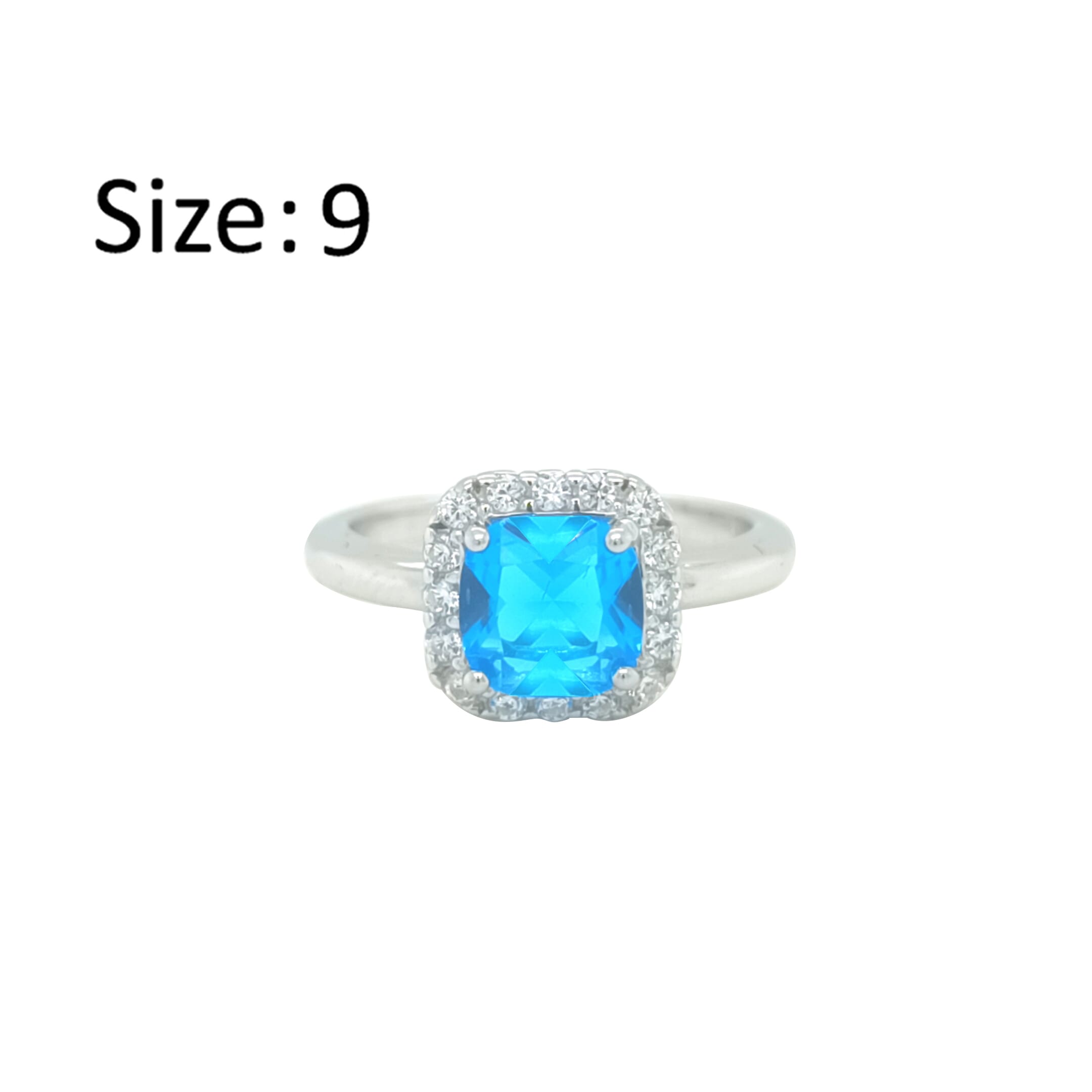 عصفور كريستال خاتم فضة عيار 925 بتصميم مربع اكوامارين مرصع بالزركون - RD0198-M-9