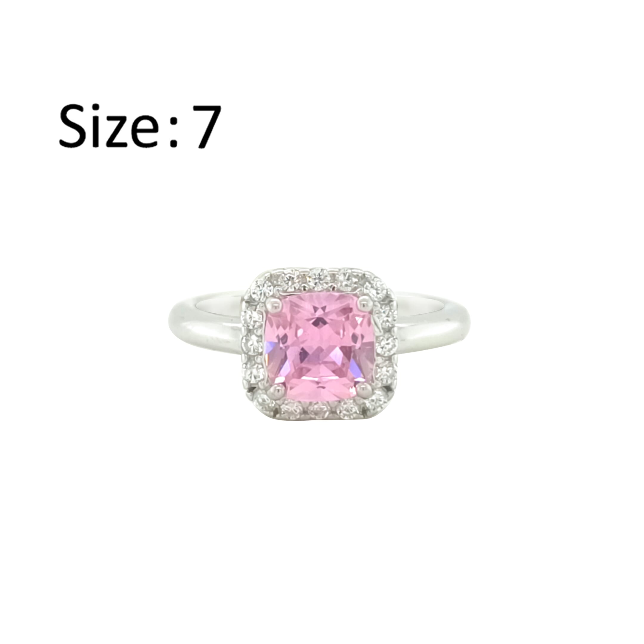 عصفور كريستال خاتم فضة عيار 925 بتصميم مربع وردي مرصع بالزركون - RD0198-O-7
