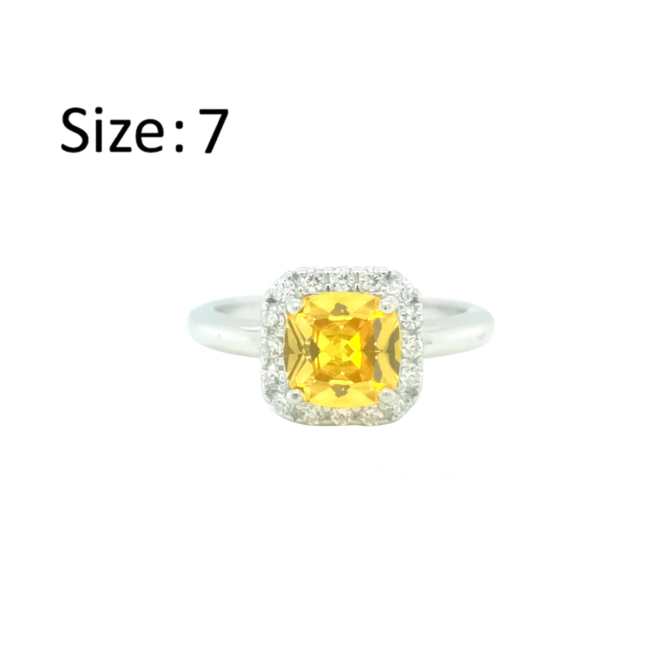 عصفور كريستال خاتم فضة عيار 925 بتصميم مربع اصفر مرصع بالزركون - RD0198-Y-7