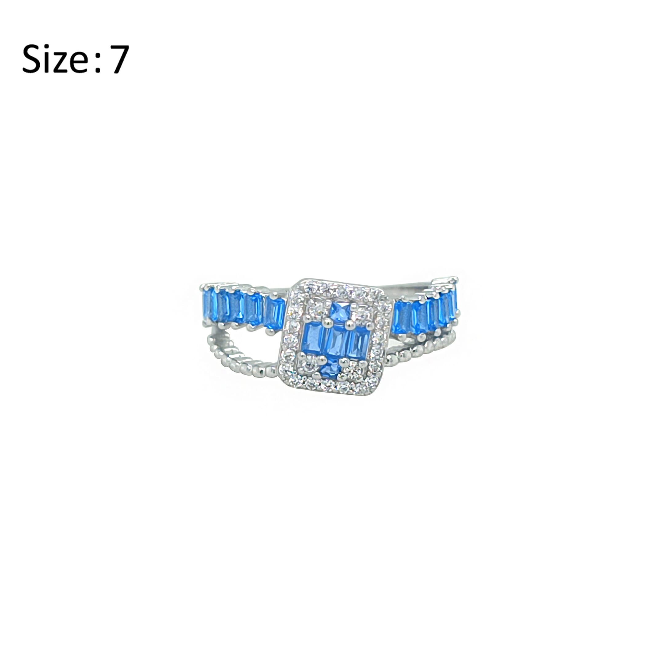 Asfour Crystal Fashion Ring With Light Blue Zircon Stones In 925 Sterling Silver-RD0184-WLB-7
