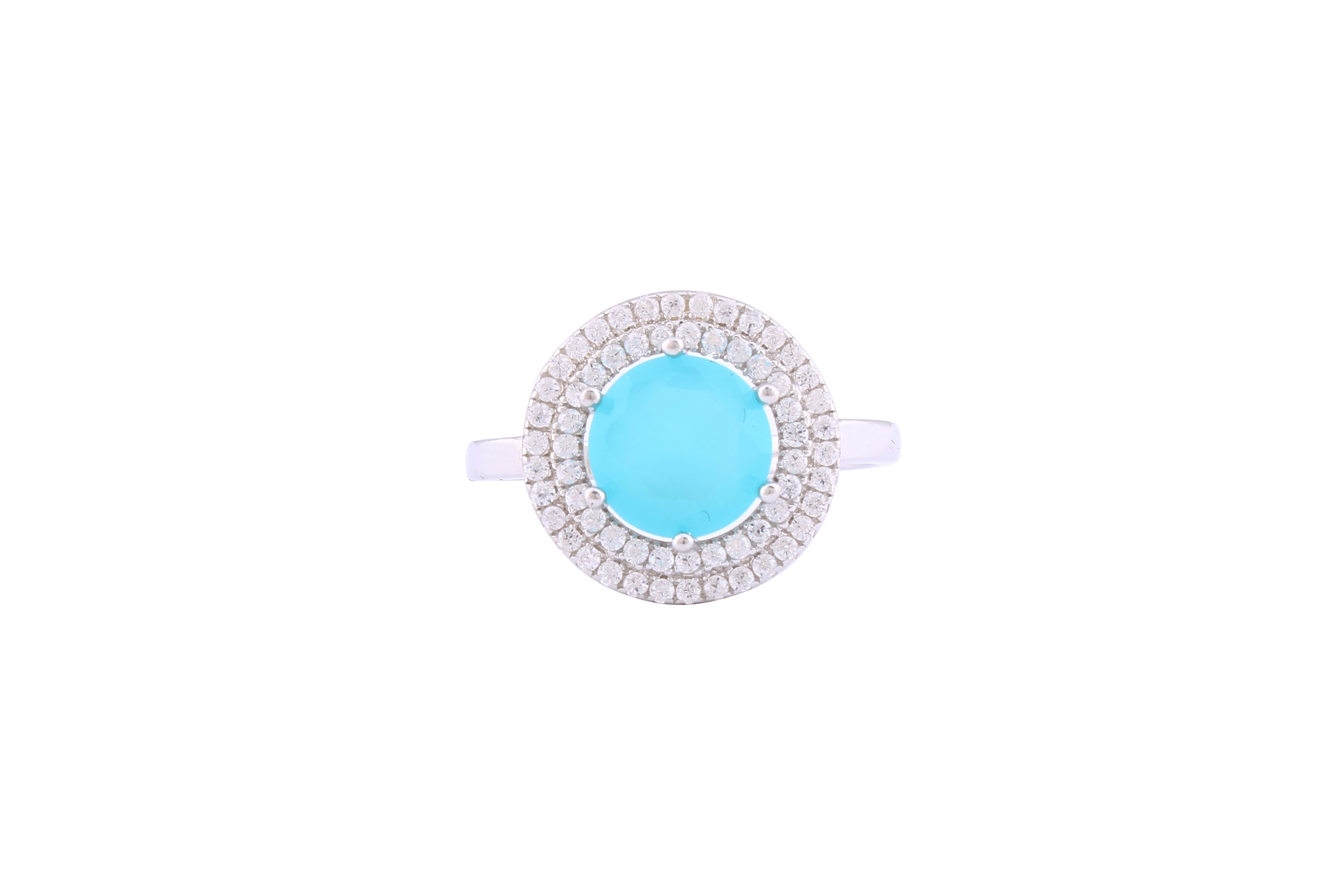 عصفور كريستال خاتم فضة عيار 925 بتصميم دائري اكوامارين مرصع الزركون - RD0146-MM-8