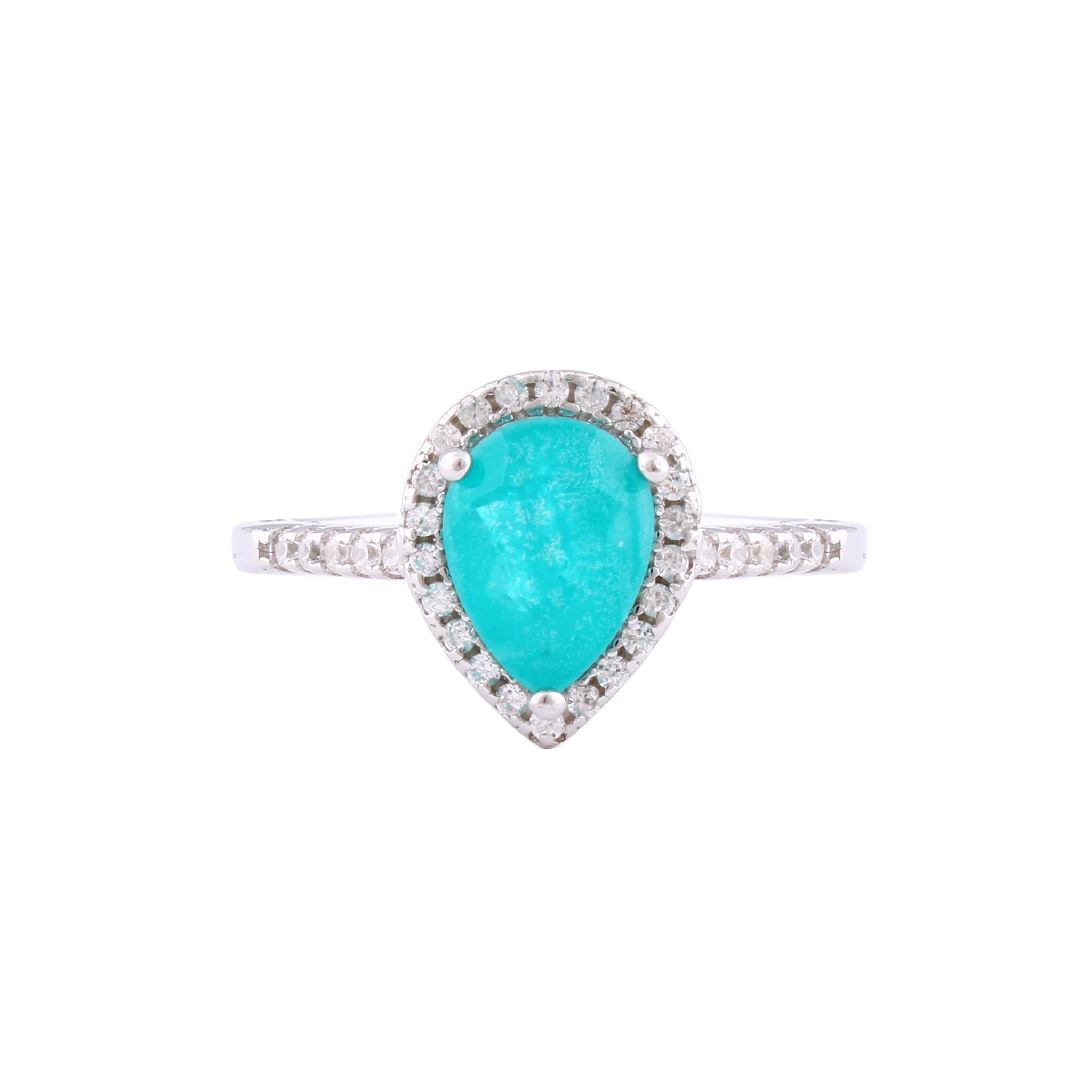 عصفور كريستال خاتم فضة عيار 925 بتصميم كمثري تركواز مرصع بالزركون - RD0132-GC-8