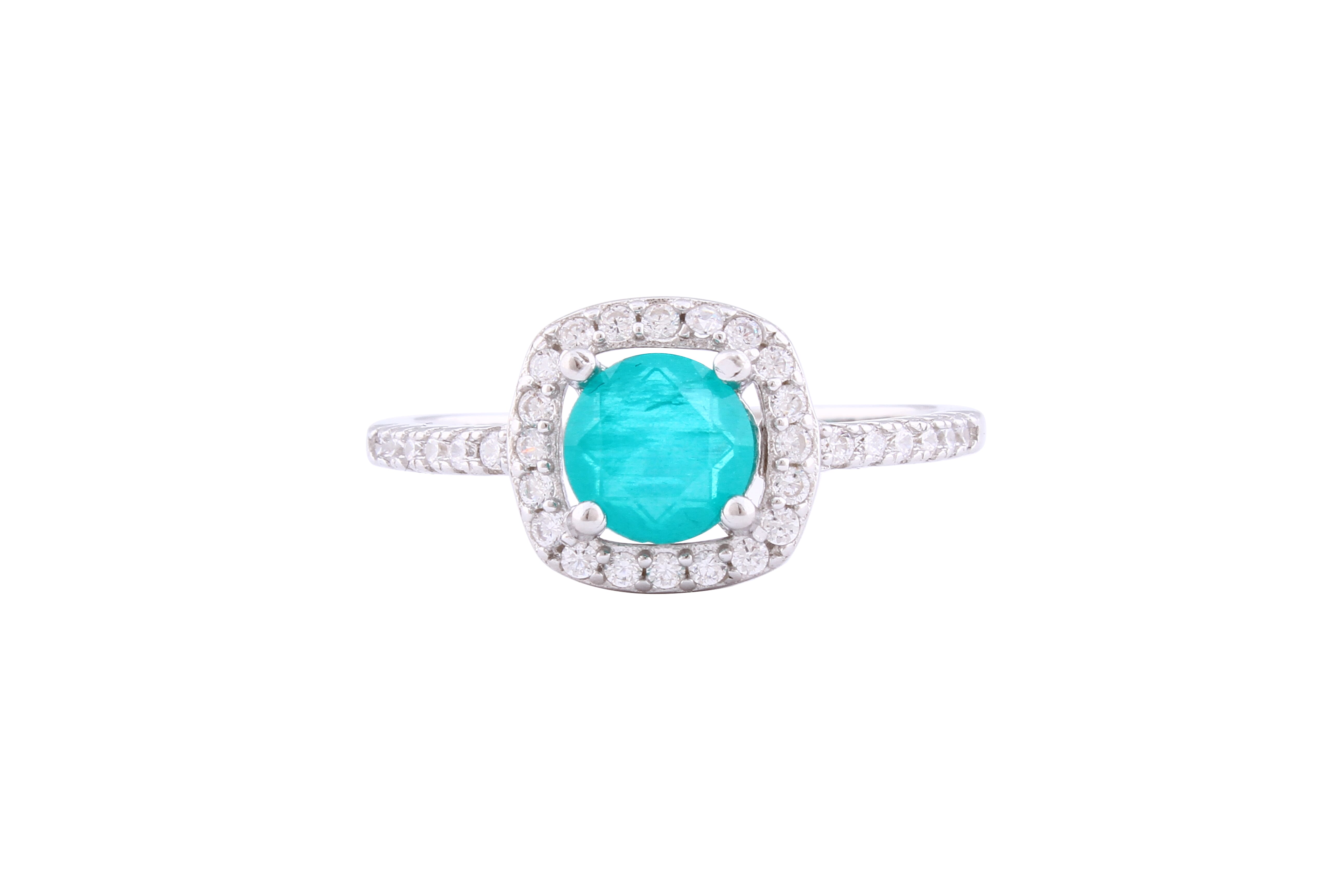 Elevate any look with this elegant halo ring, crafted by Asfour Crystal to showcase timeless sparkle and everyday sophistication. A luminous round zircon sits at the center, framed by a delicate halo of shimmering stones that catch the light from every angle. The classic round cut enhances brilliance and adds a refined touch, making this piece perfect for both special occasions and daily wear.