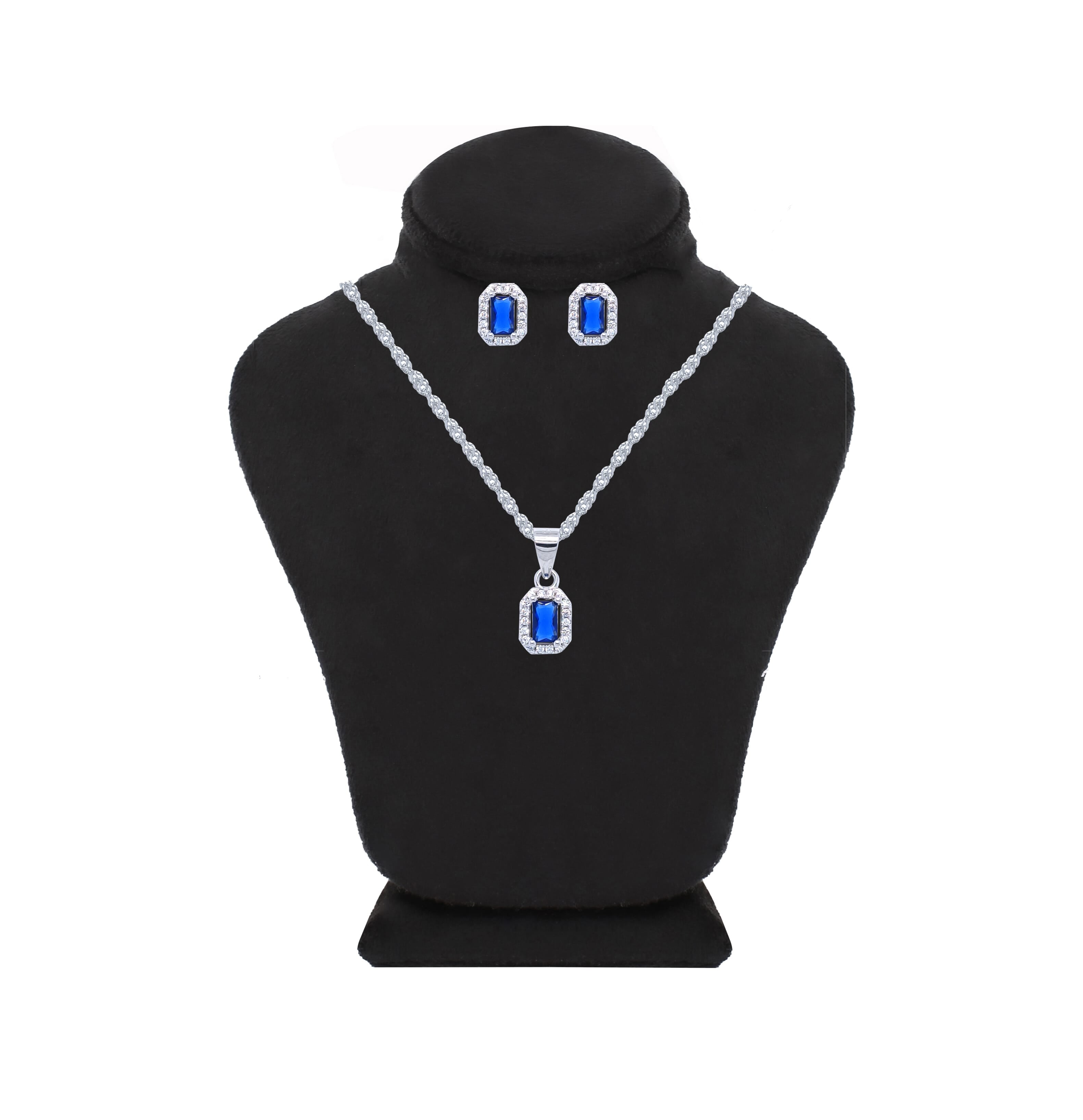 Asfour Crystal Jewelry Set Of Necklace And Earrings With Blue Emerlad Design in 925 Sterling Silver-SM0013-WB
