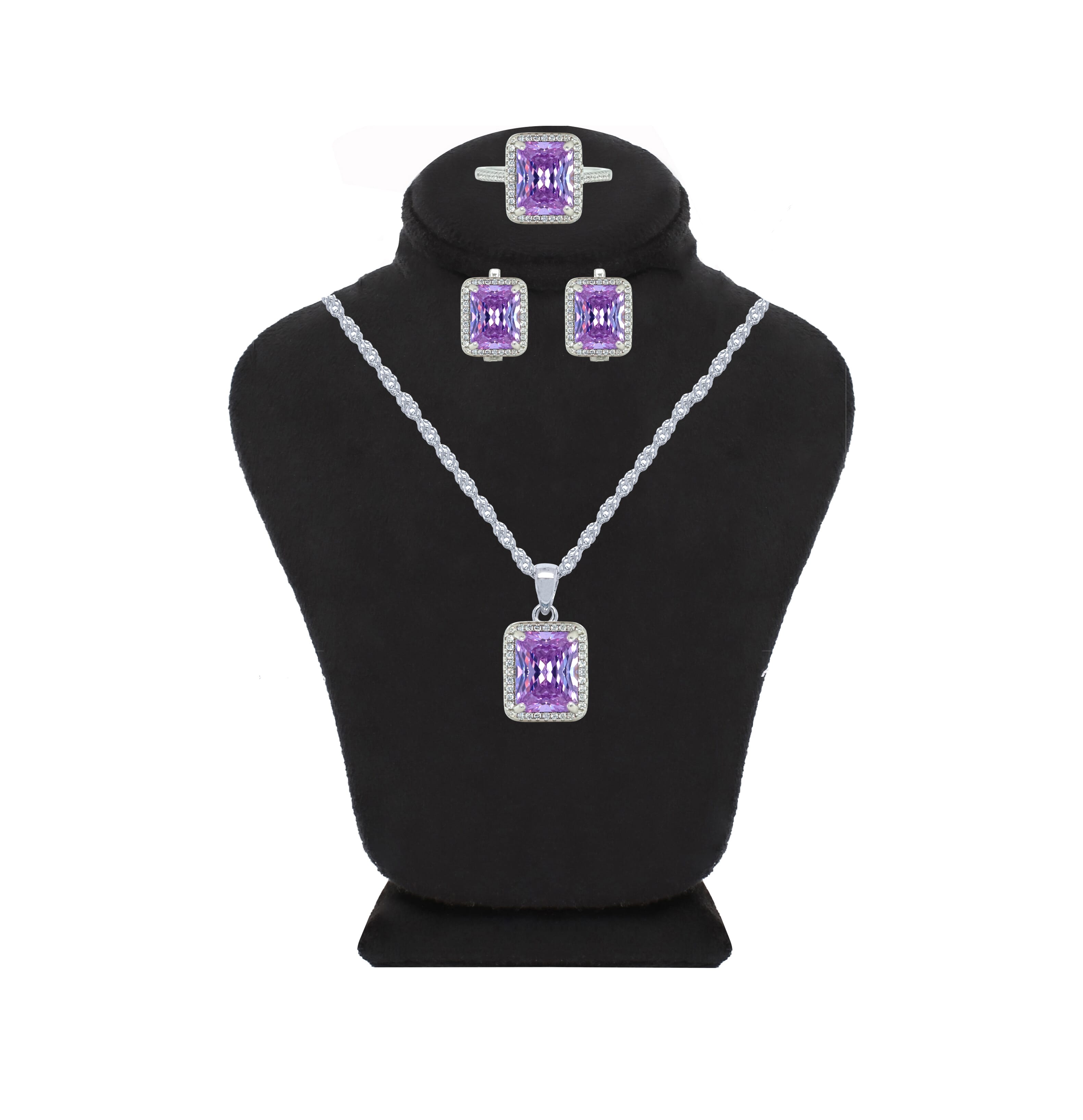 Asfour Crystal Jewelry Set Of Necklace, Earrings and Ring With Tenzanite Emerald Design in 925 Sterling Silver-SM0003-N-7