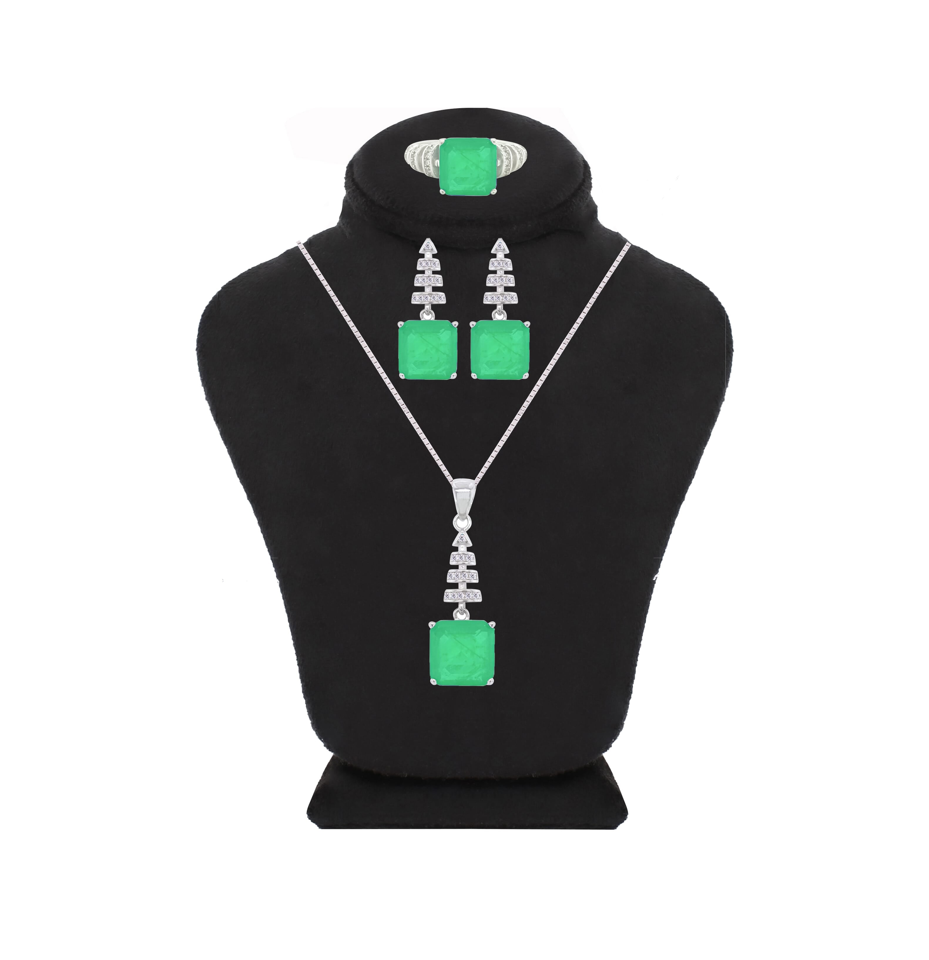 عصفور كريستال طقم فضة عيار 925 بتصميم مربع اخضر مرصع بالزركون - SD0061-G-7