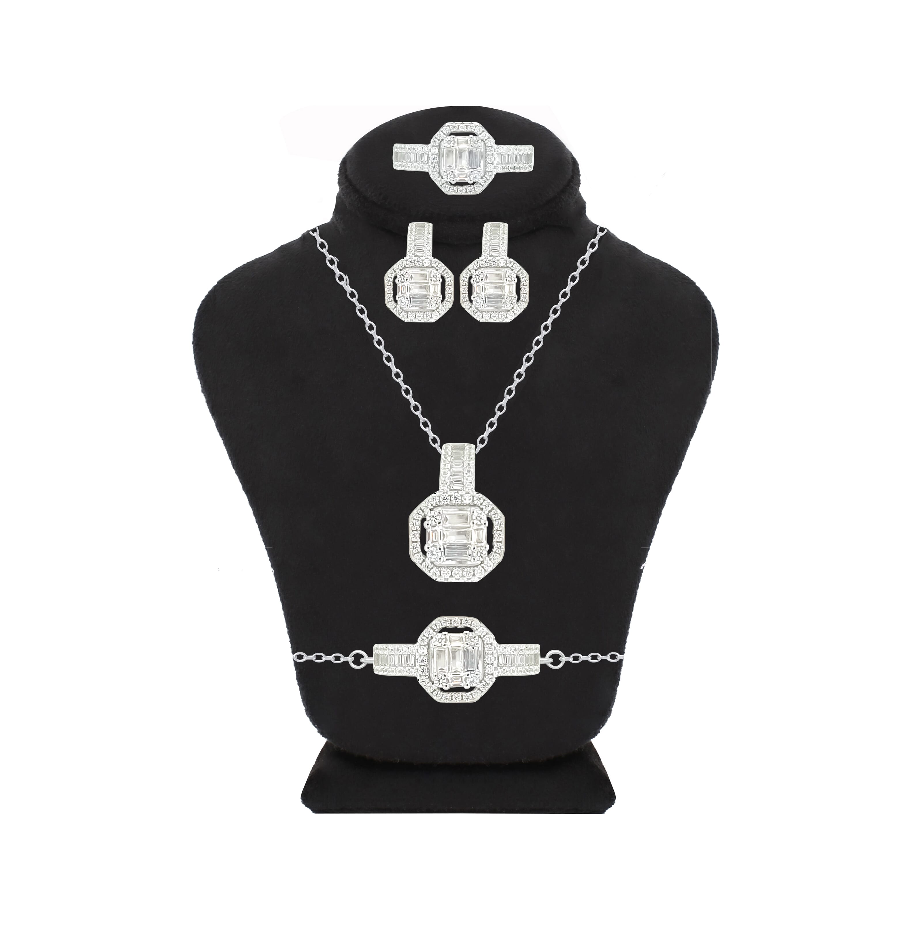 Asfour Crystal Jewelry Set With Art Deco Zircon Design In 925 Sterling Silver-SD0042-9