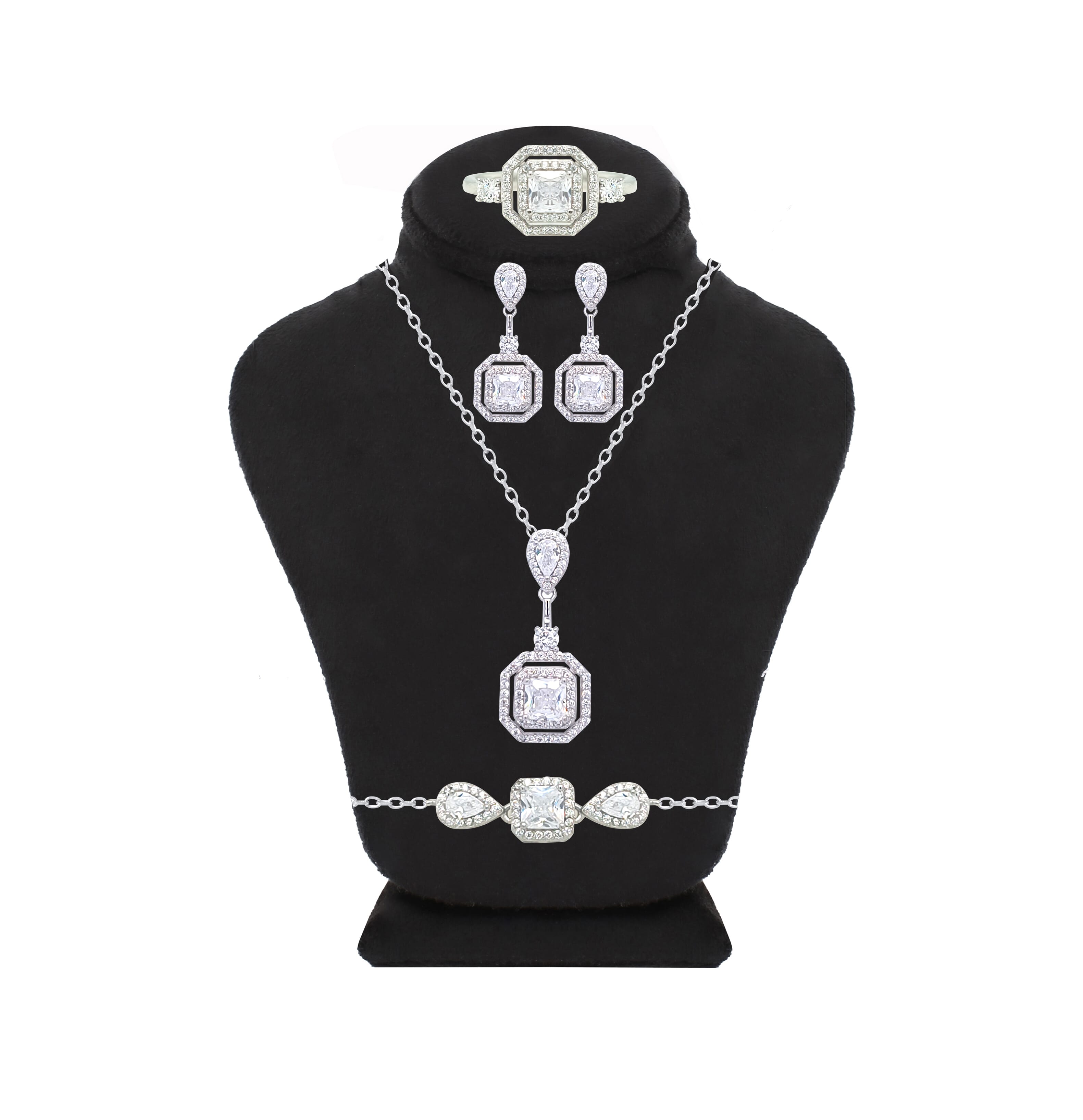 Asfour Crystal Jewelry Set With Art Deco Zircon Design In 925 Sterling Silver-SD0045-7