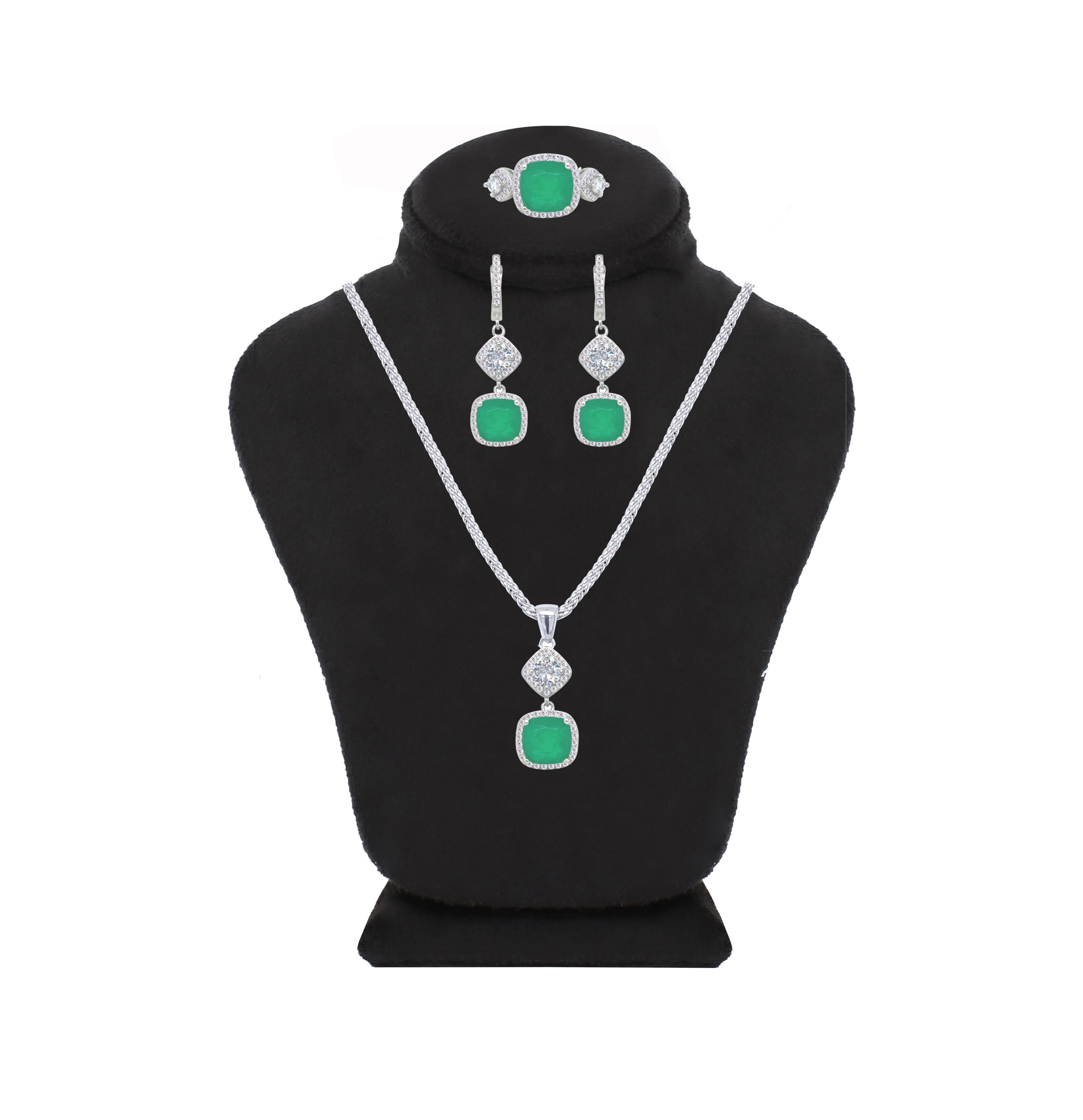 عصفور كريستال طقم فضة عيار 925 بتصميم مربع اخضر مرصع بالزركون - SD0056-G-7
