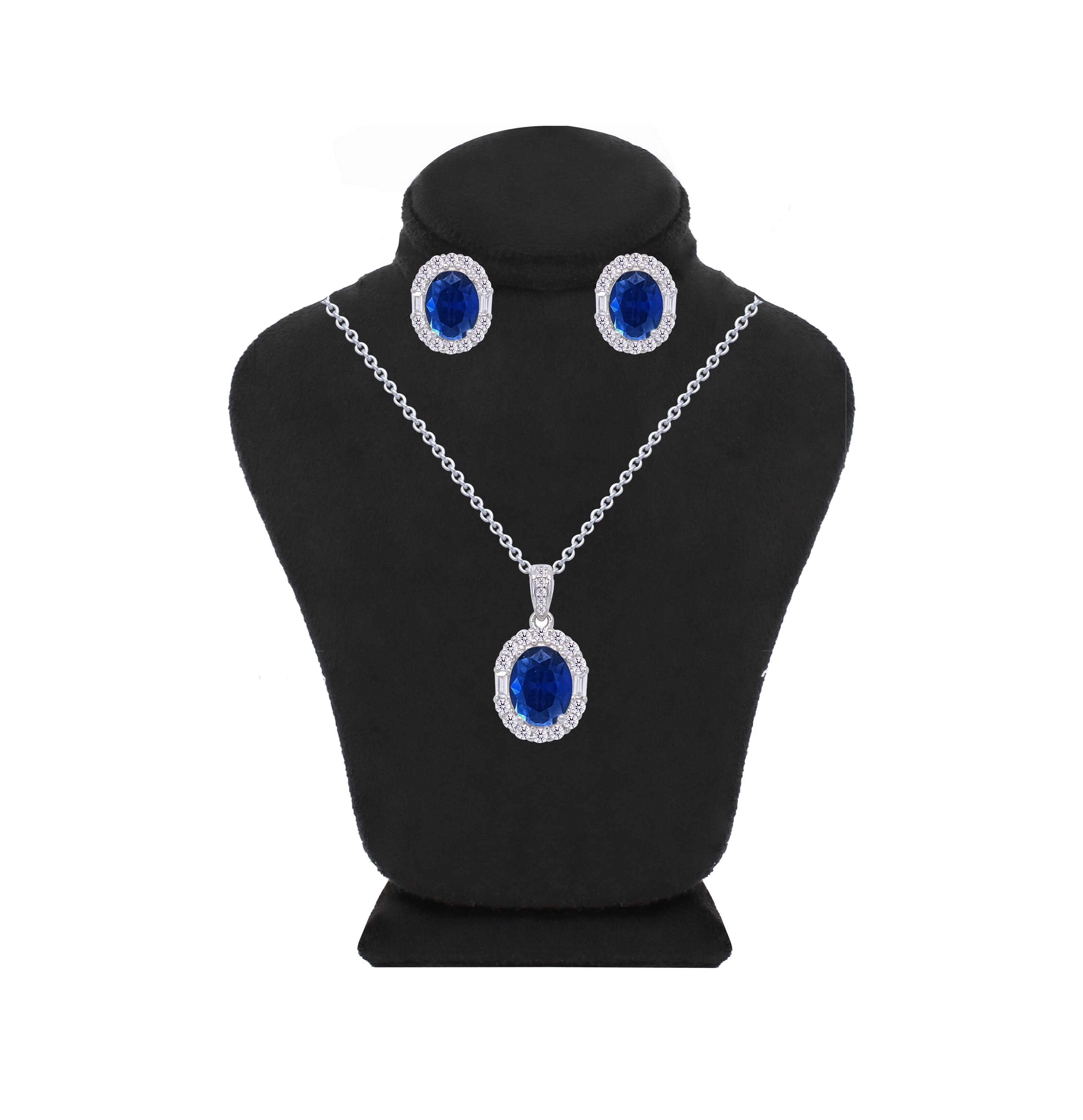 عصفور كريستال طقم فضة عيار 925 بتصميم بيضاوي ازرق مرصع بالزركون - SM0033-B