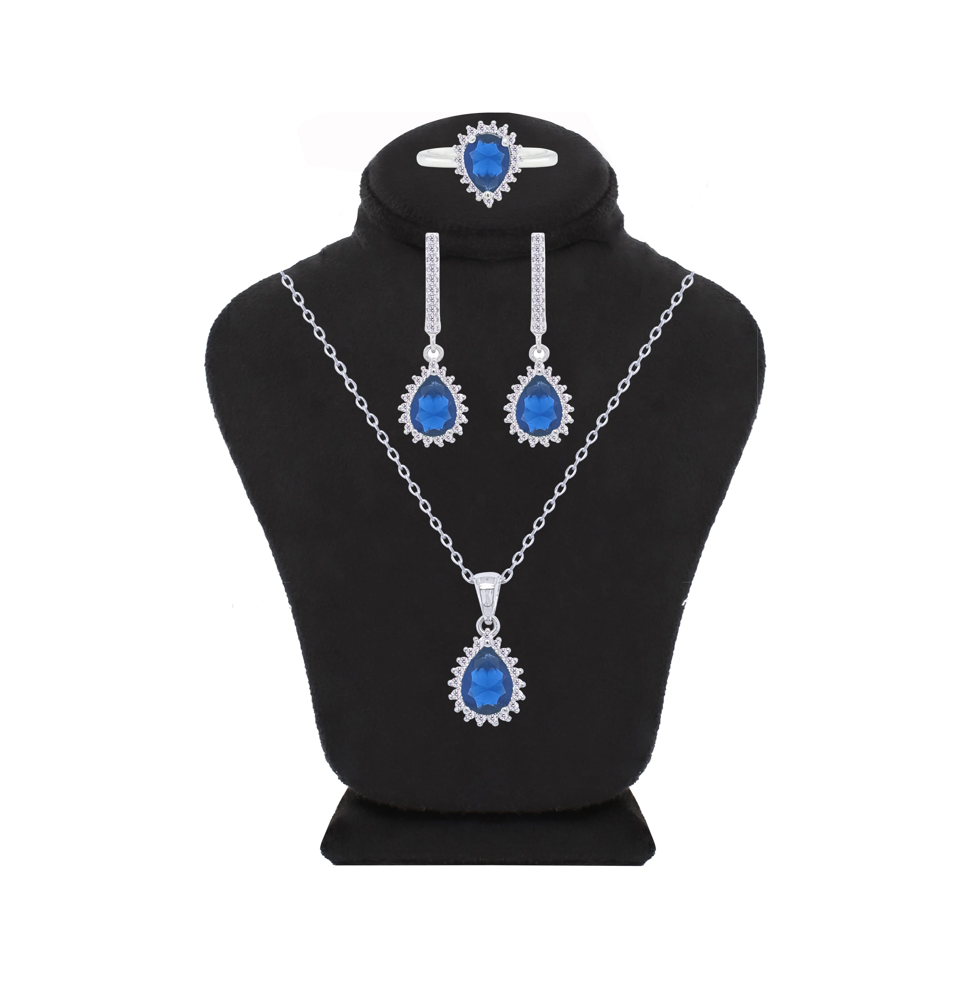 عصفور كريستال طقم فضة عيار 925 بتصميم كمثري ازرق مرصع بالزركون