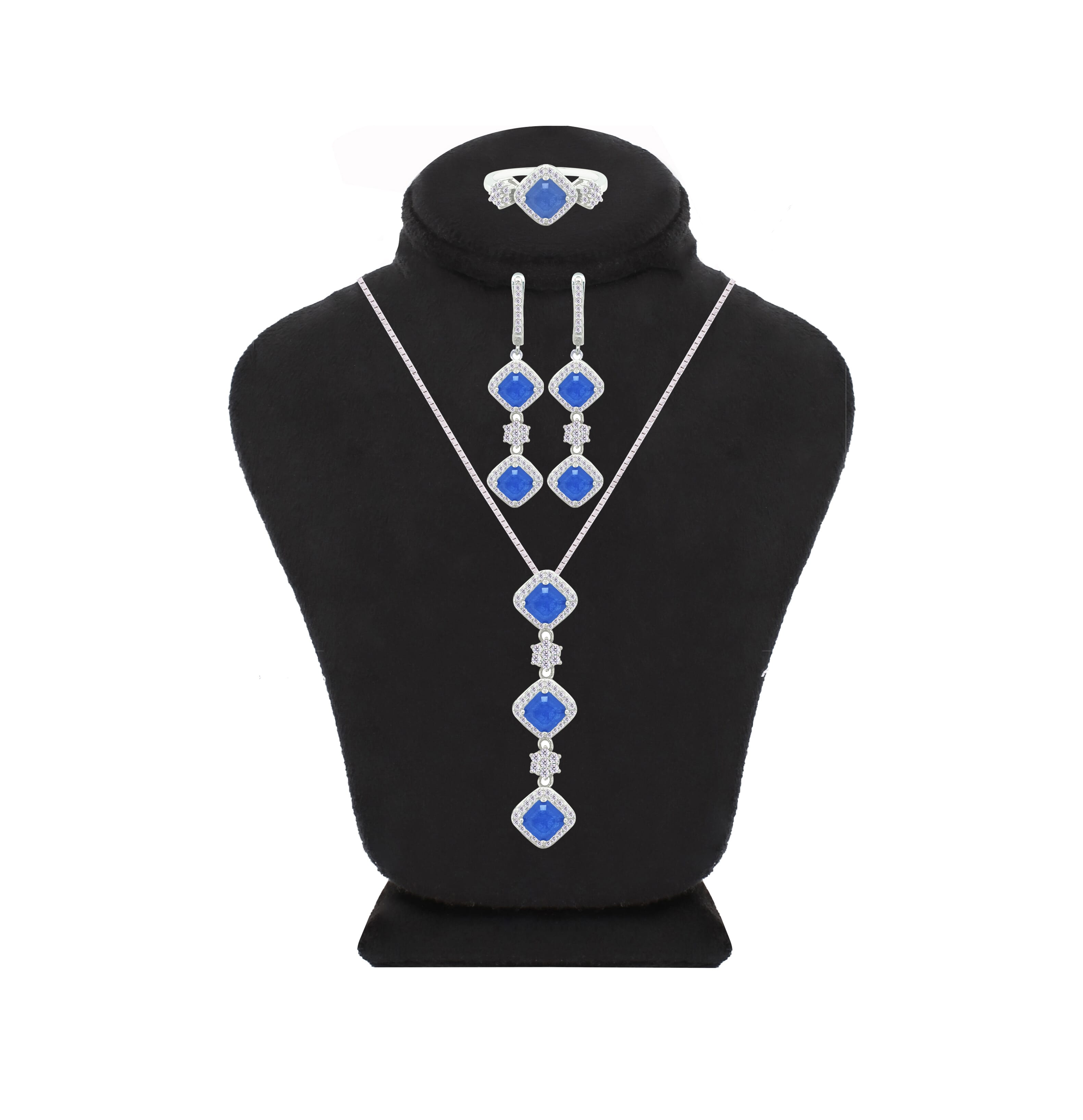 عصفور كريستال طقم فضة عيار 925 بتصميم مربعات زرقاء مرصعة بالزركون - SD0058-B-9