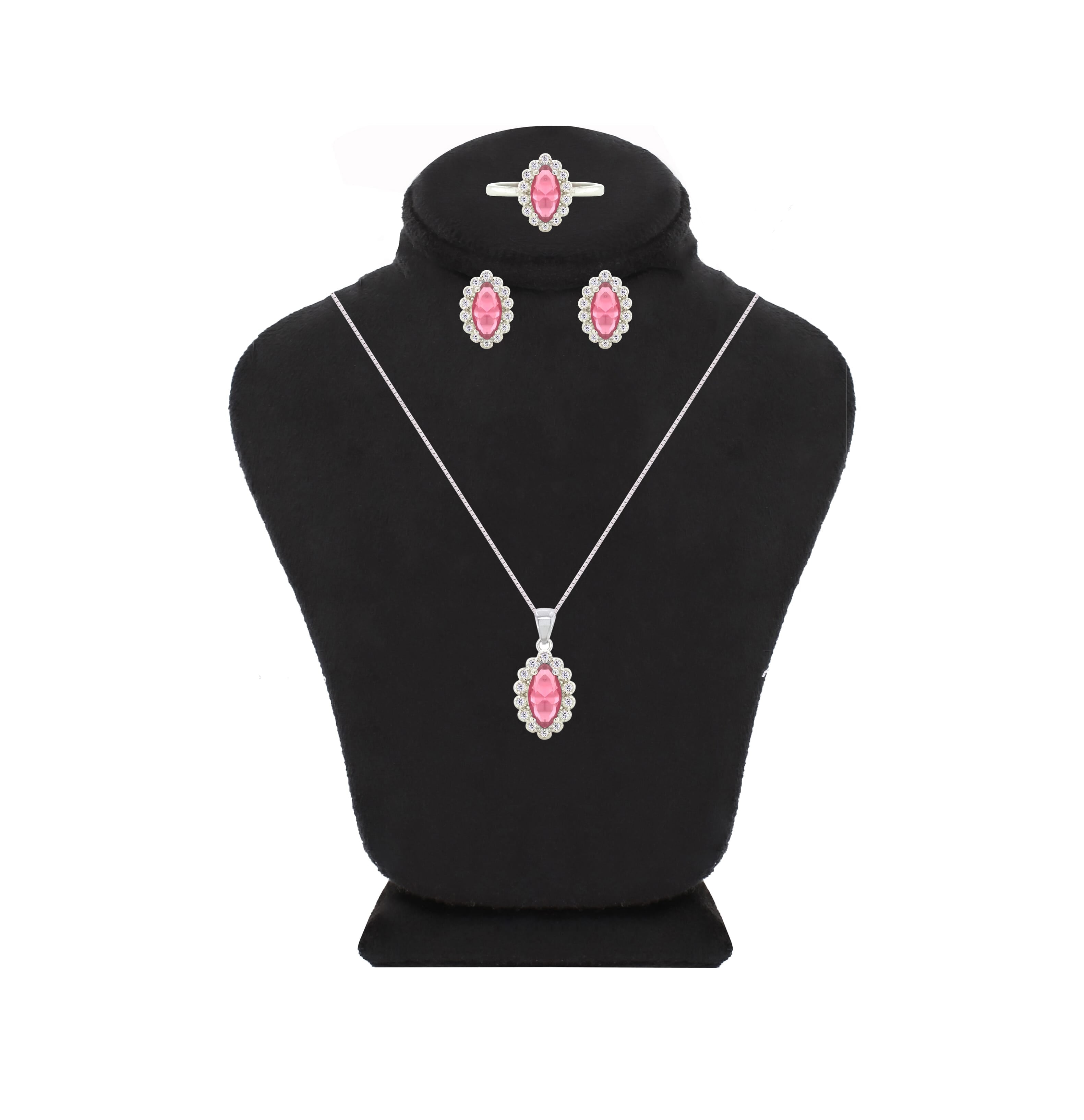 عصفور كريستال طقم فضة عيار 925 بتصميم ماركيز لون وردي مرصع بالزركون - SD0063-O5-8