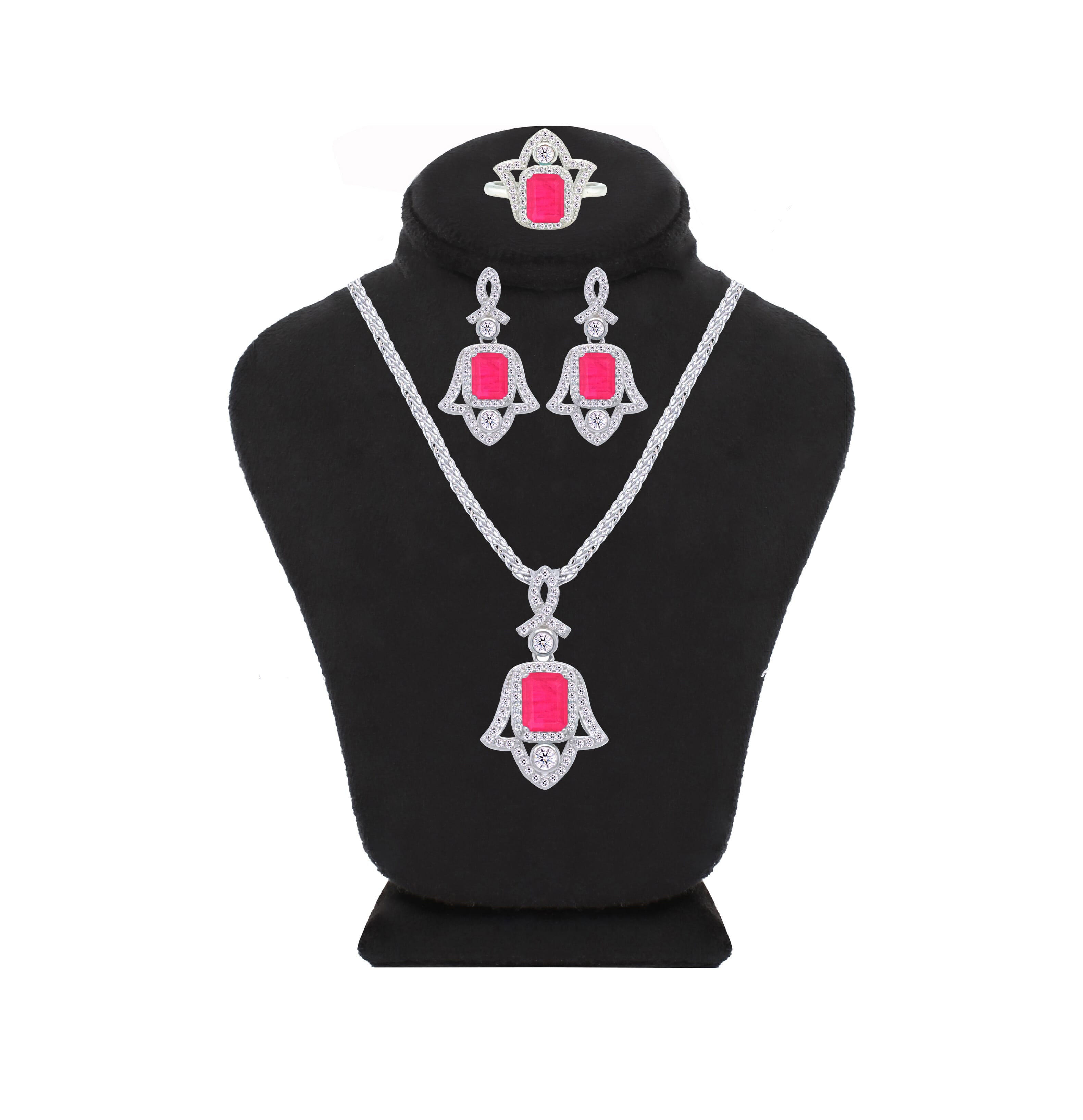 عصفور كريستال طقم فضة عيار 925 بتصميم كف يد ( خمسة ) فوشيا مرصع بفصوص الزركون - SD0053-F-7