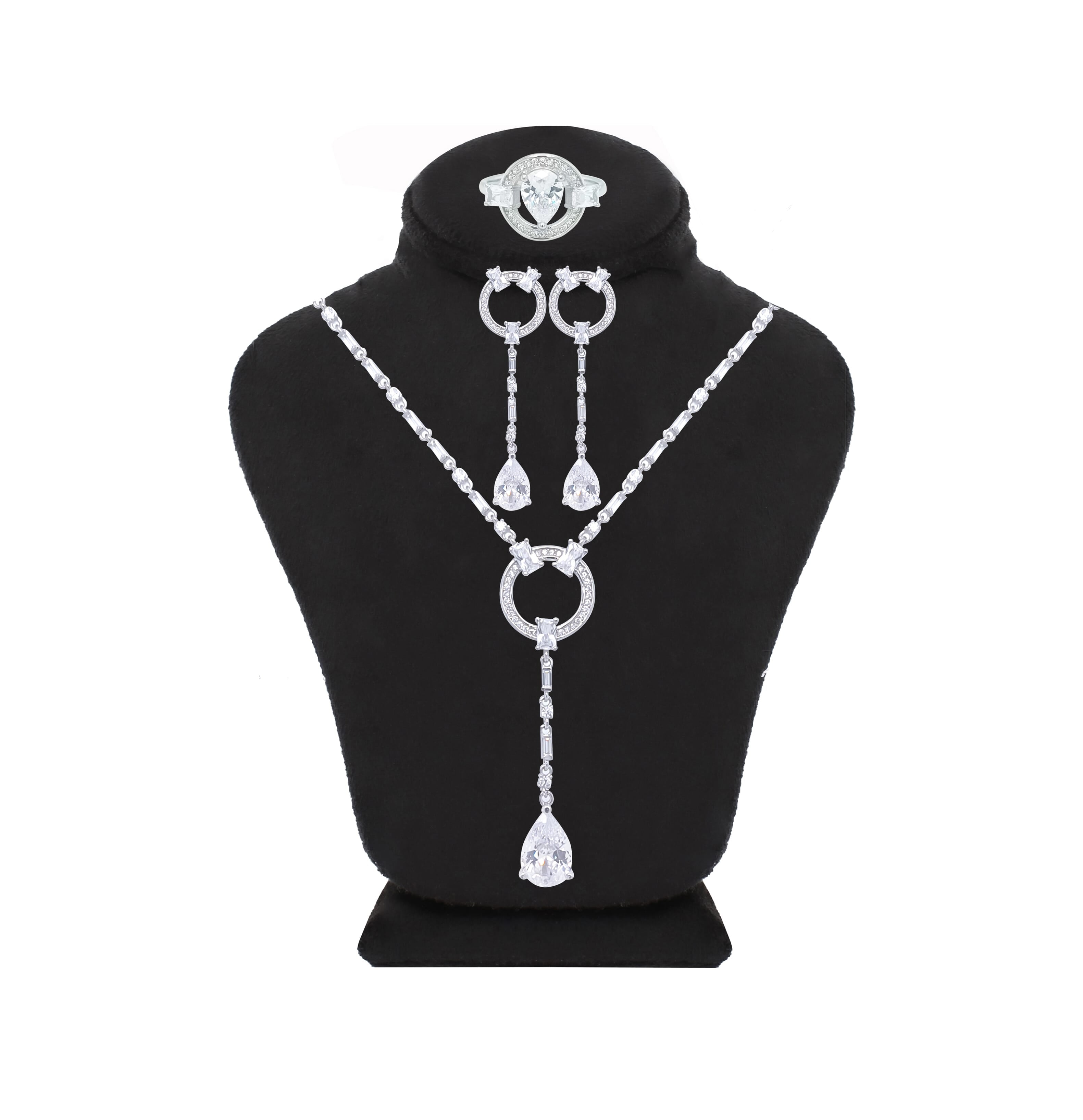 Asfour Crystal Jewelry Set With Decorative Pear Design In 925 Sterling Silver-SD0029-6