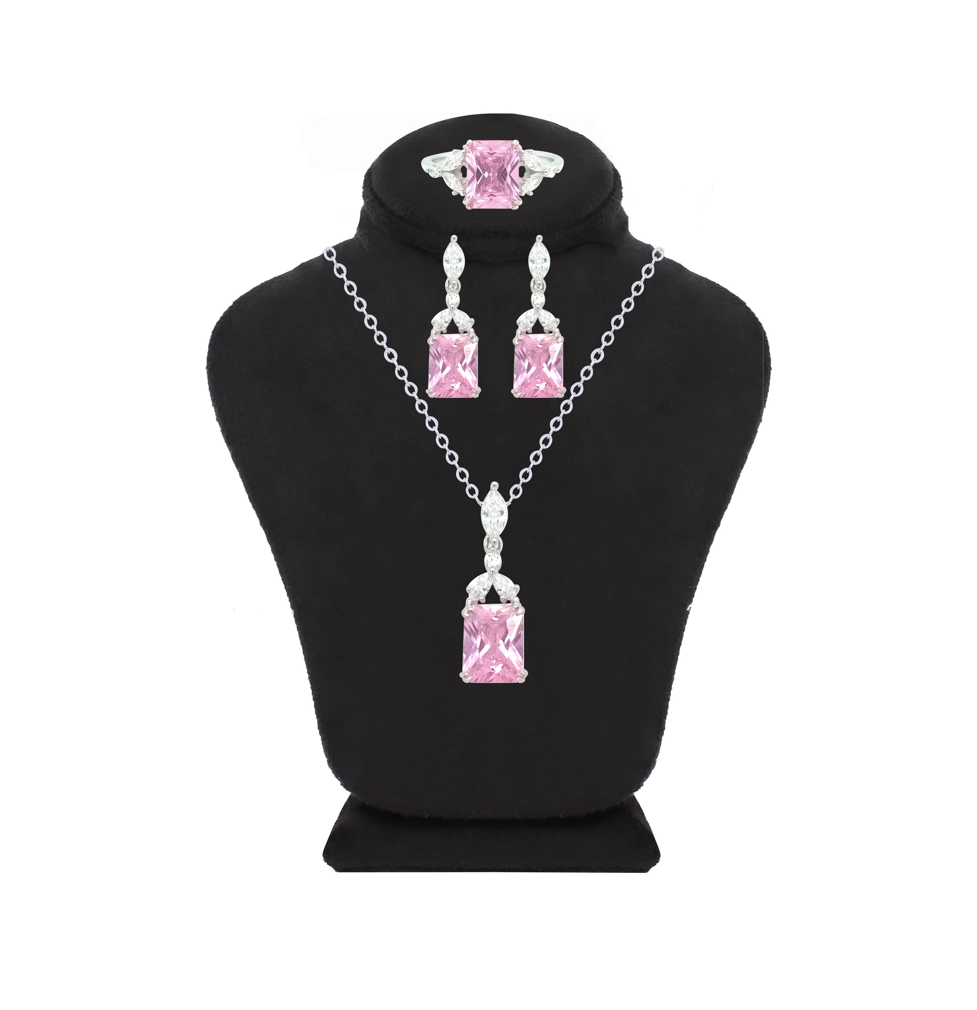 Asfour Crystal Jewelry Set With Decorative Rose Emerald Design In 925 Sterling Silver-SD0035-O-9