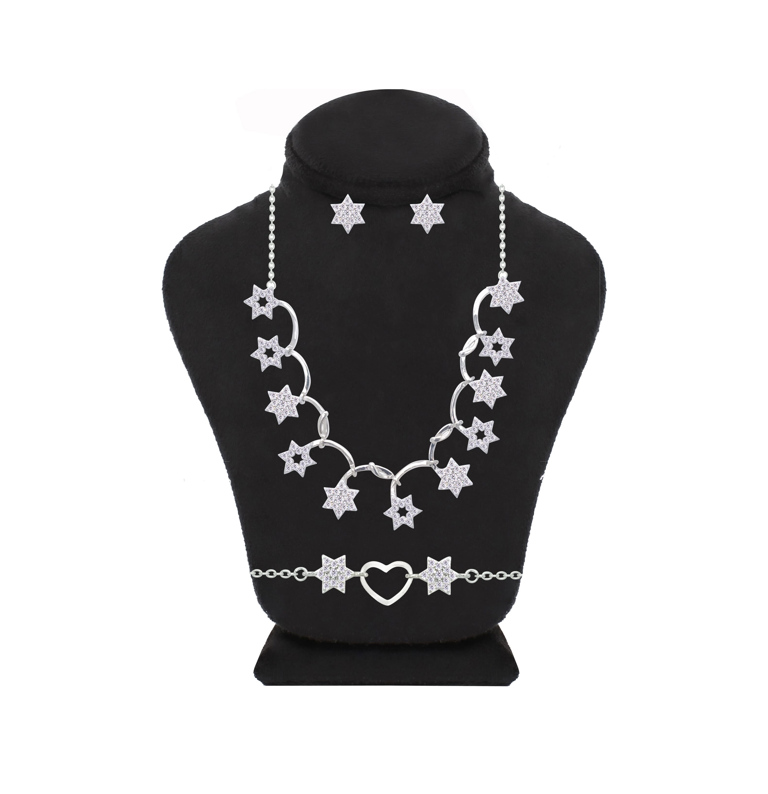 عصفور كريستال طقم فضة عيار 925 بتصميم نجوم مرصعة بالزركون - SD0099