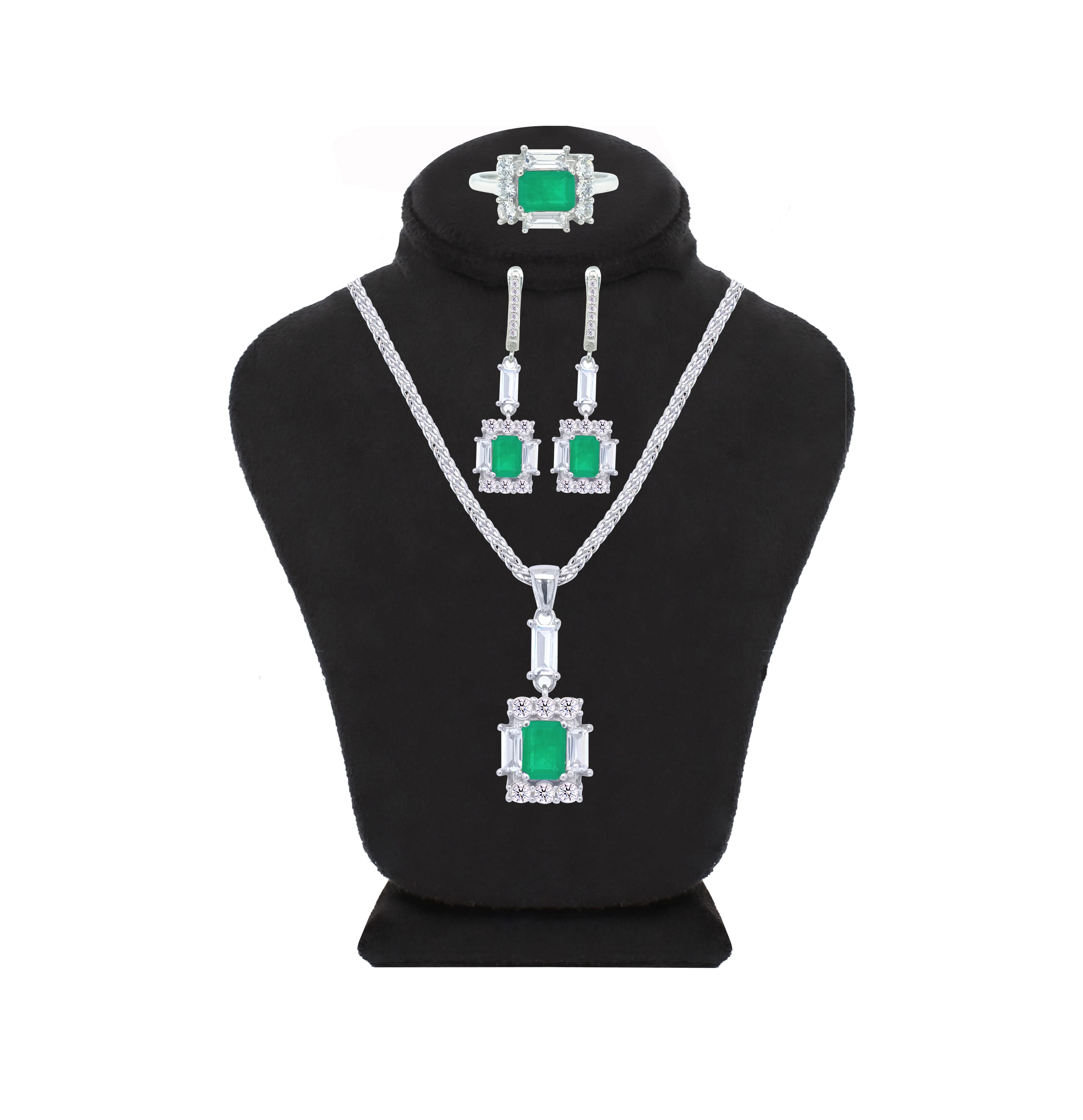عصفور كريستال طقم فضة عيار 925 بتصميم اميرالد زخرفي لون تركواز مرصع بفصوص الزركون - SD0050-G-9